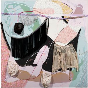 Collage e tecnica mista su tela, cm 190x190 2006 Firma, data e titolo al verso sulla tela: Manuela Menici / 2006 [..]