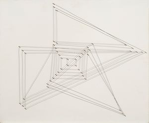 Fili di metallo, chiodi e acrilico su tavola, cm 51x61,6 1952 Firma, scritta e data al verso: Caraceni / Bruno [..]