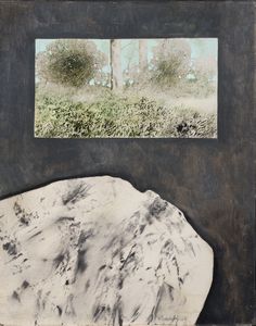 Assemblaggio e tecnica mista su tavola, cm 31,5x37,5 (con cornice) 1991-2002 Firma, data e titolo al verso: F. [..]