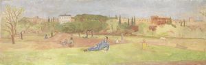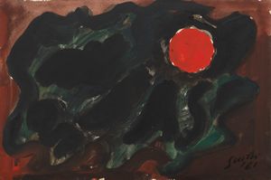 Olio su carta applicata su tela, cm 31x46,2 1961 Firma e data in basso a destra: Guidi / '61. Al verso sulla [..]