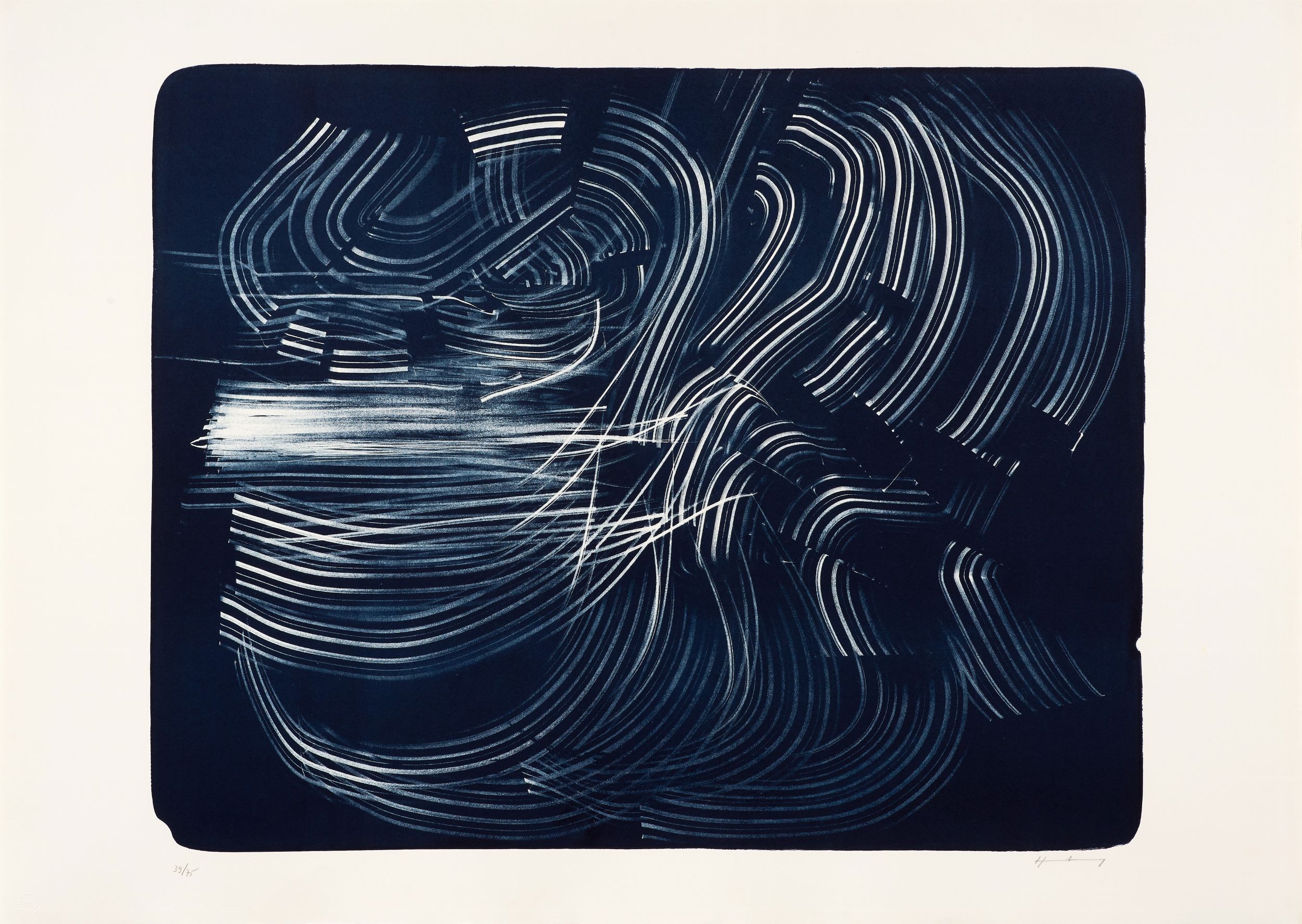 1973 Firma a matita sul margine in basso a destra: Hartung, tiratura in basso a sinistra: 39/75, timbro a secco Erker Presse, St. Gallen.
