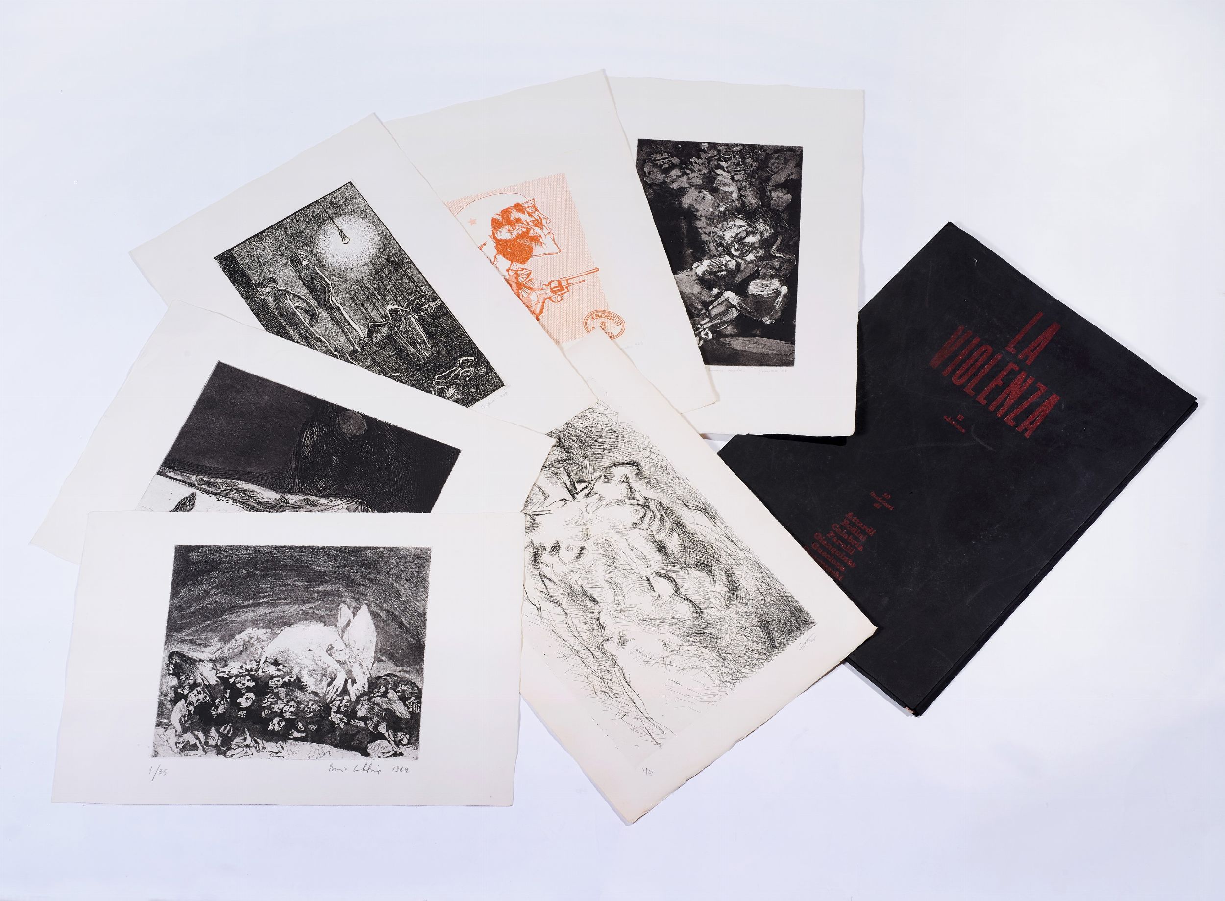 1960-62 Cartella di dieci incisioni di autori vari, es. 1/3, cm 50x35 ca. ognuna Ognuna con firma e data a matita in basso a destra, tiratura e titolo in basso a sinistra.