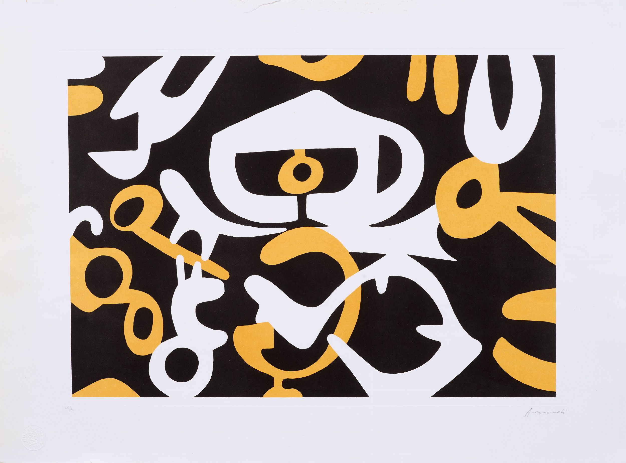 Firma a matita sul margine in basso a destra: Accardi, tiratura in basso a sinistra: 65/80, timbro a secco: Rubinart, Roma. Al verso: timbro certificato di garanzia Grafica d'Arte Lombardi, Roma, con dati dell'opera.