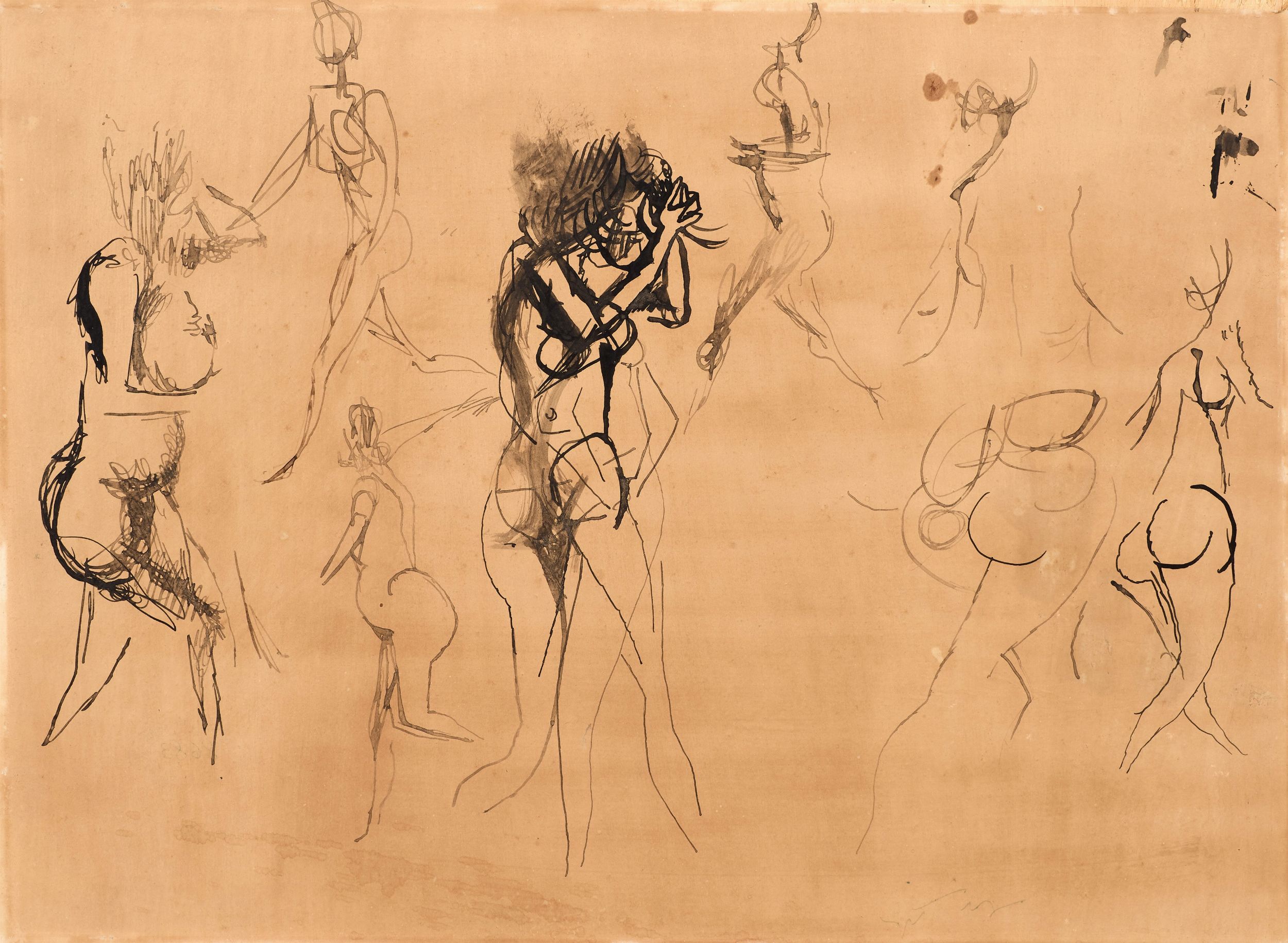 Renato Guttuso : Studio per figure  - Asta Dipinti, Disegni, Sculture e Grafica - Associazione Nazionale - Case d'Asta italiane
