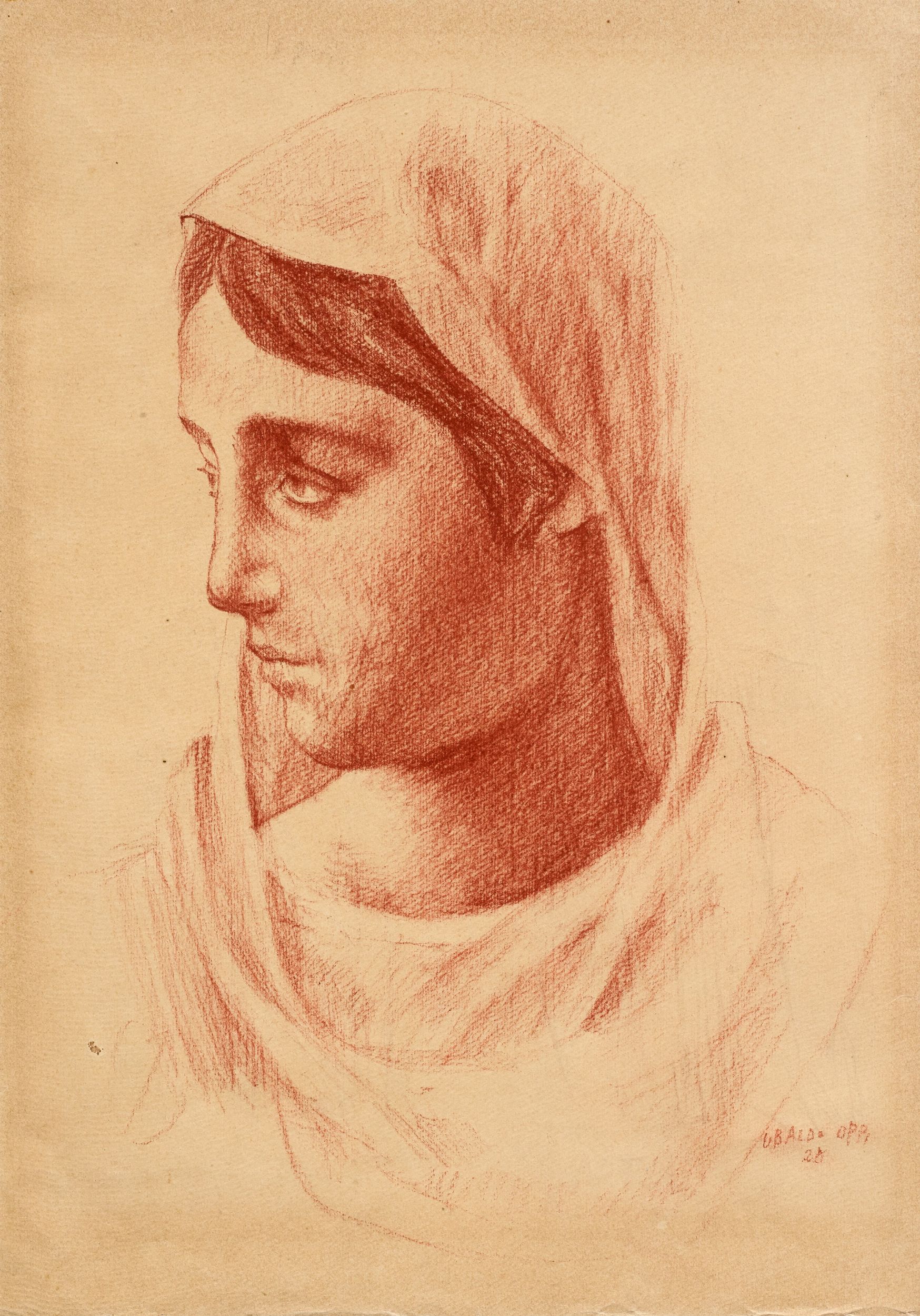 1928 Firma e data in basso a destra: Ubaldo Oppi / 28. Altra composizione al verso: Prudentia e Temperantia , matita su carta; su un cartoncino di supporto: timbro Galleria Scaletta.