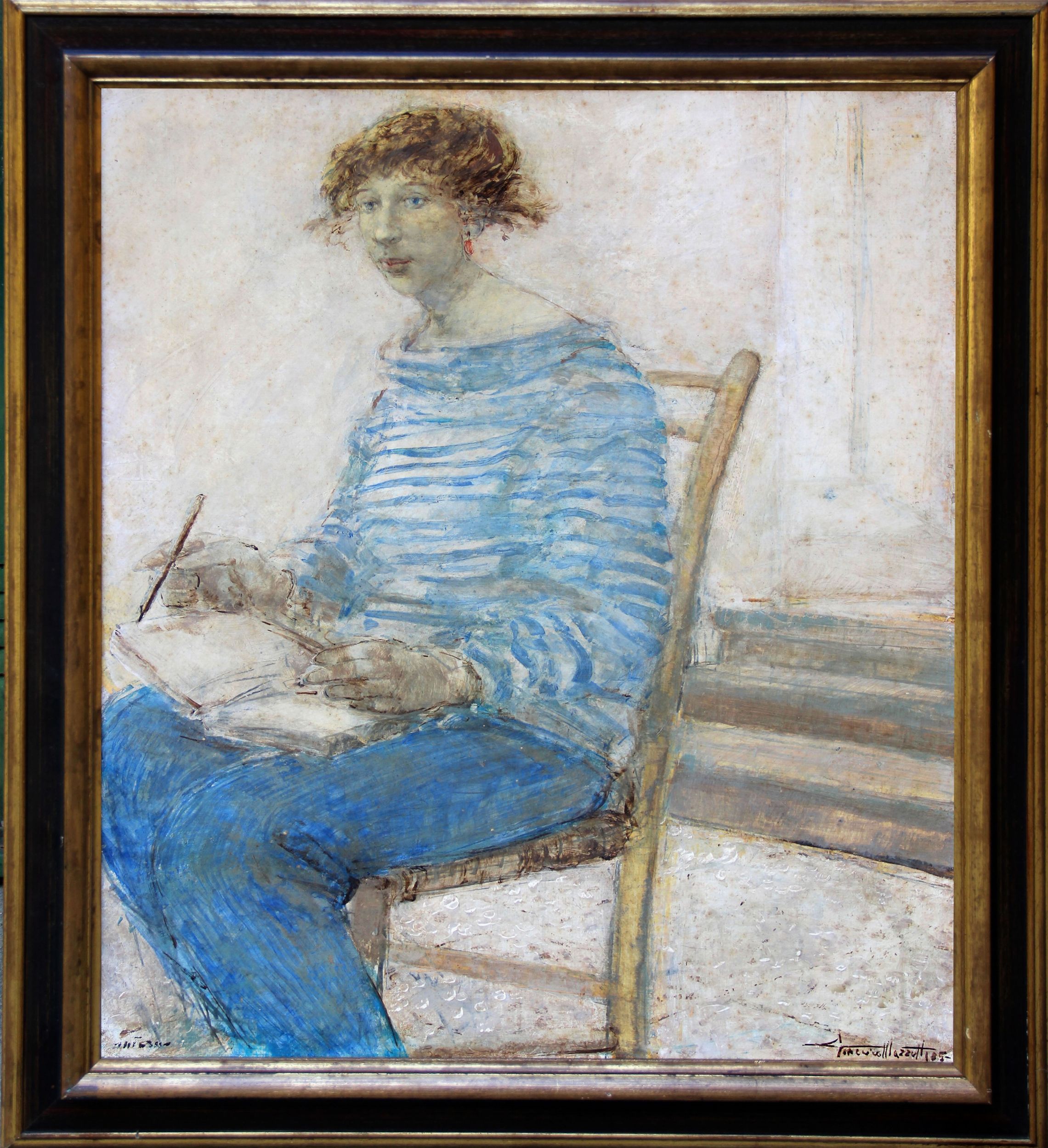1985 Firma 'Mazzotta' (in basso a sinistra); titolo, data 'Fanciulla azzurra, 85' (in basso a destra)