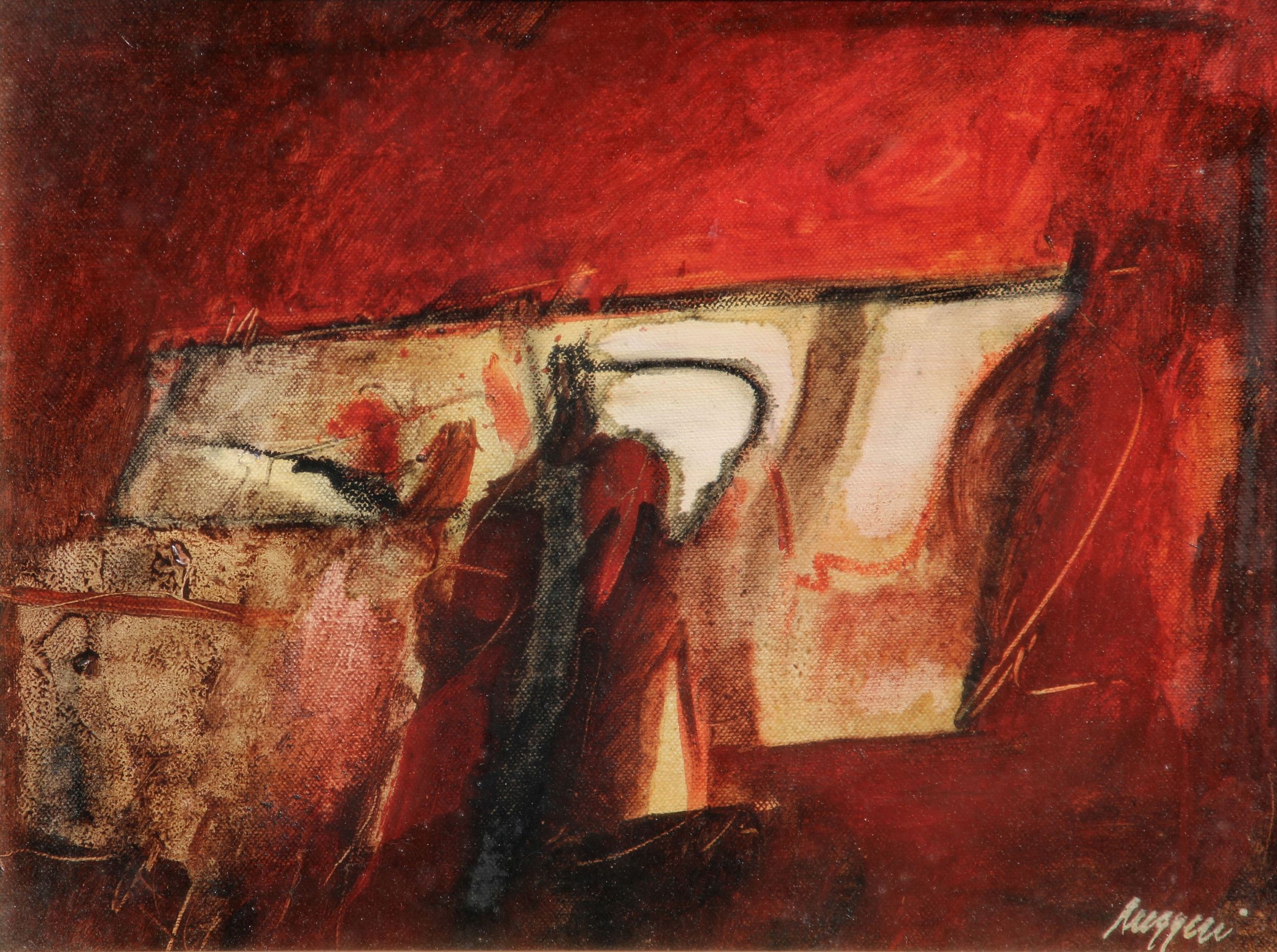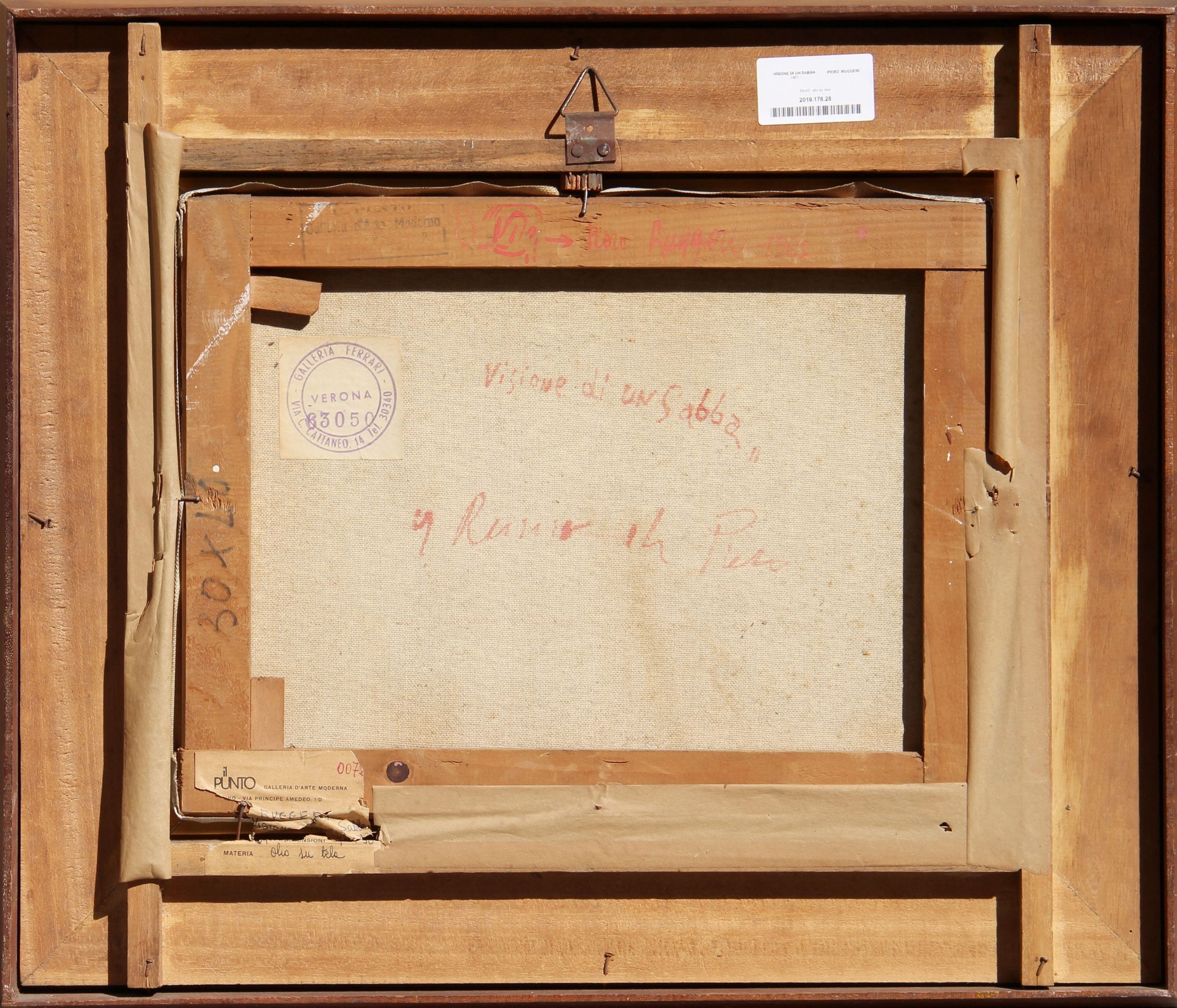 1961 Firma 'Ruggeri' (in basso a destra) Firma, data, titolo, firma 'Piero Ruggeri, 1961, Visione di un sabba, Ruggeri Piero'; etichetta e timbro di Galleria Il Punto, Torino; etichetta di Galleria Ferrari, Verona (al retro)