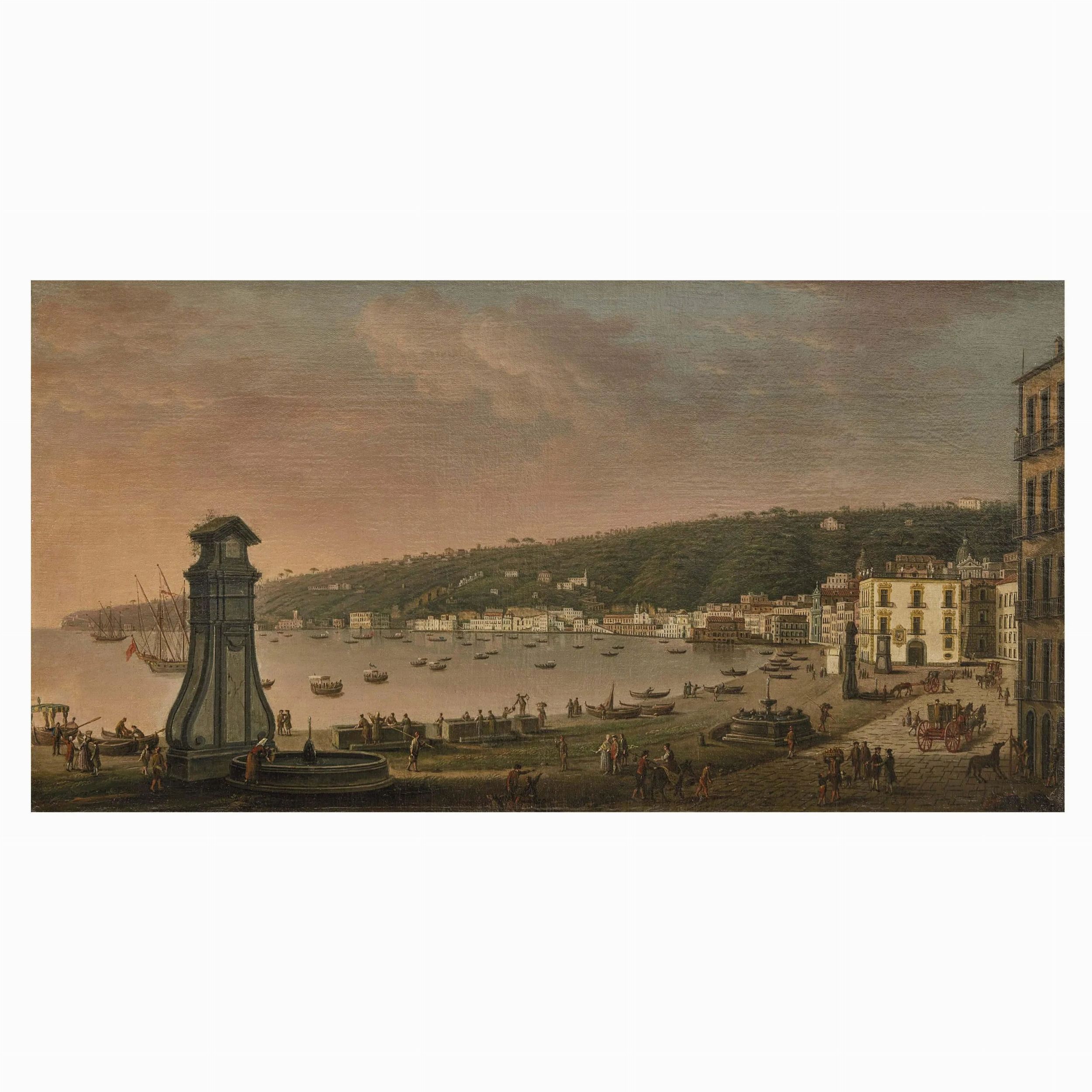 Tradizionalmente attribuito ad Antonio Joli, che in realtà non dipinse vedute napoletane di questo soggetto, il dipinto va invece restituito al catalogo di Gabriele Ricciardelli, attivo a Napoli nello stesso periodo e autore di numerose vedute della città sulla riva del mare, tra cui appunto questo soggetto, fino a quel momento del tutto inedito.
