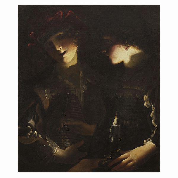 DUE GIOVANI IN UN INTERNO A LUME DI CANDELA