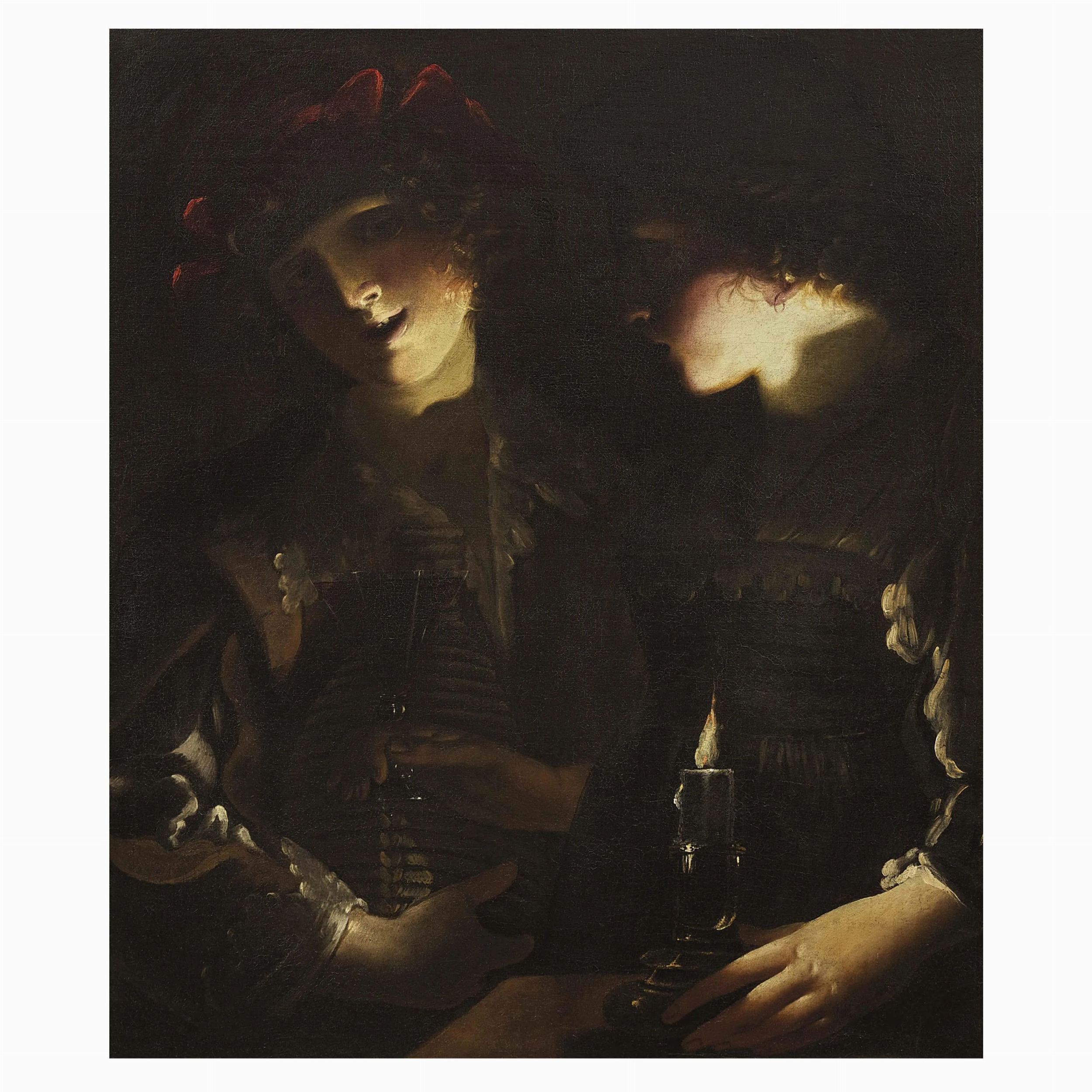 TWO YOUNG PEOPLE IN A INTERIOR BY CANDLELIGHT