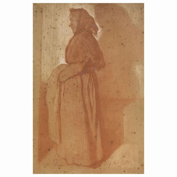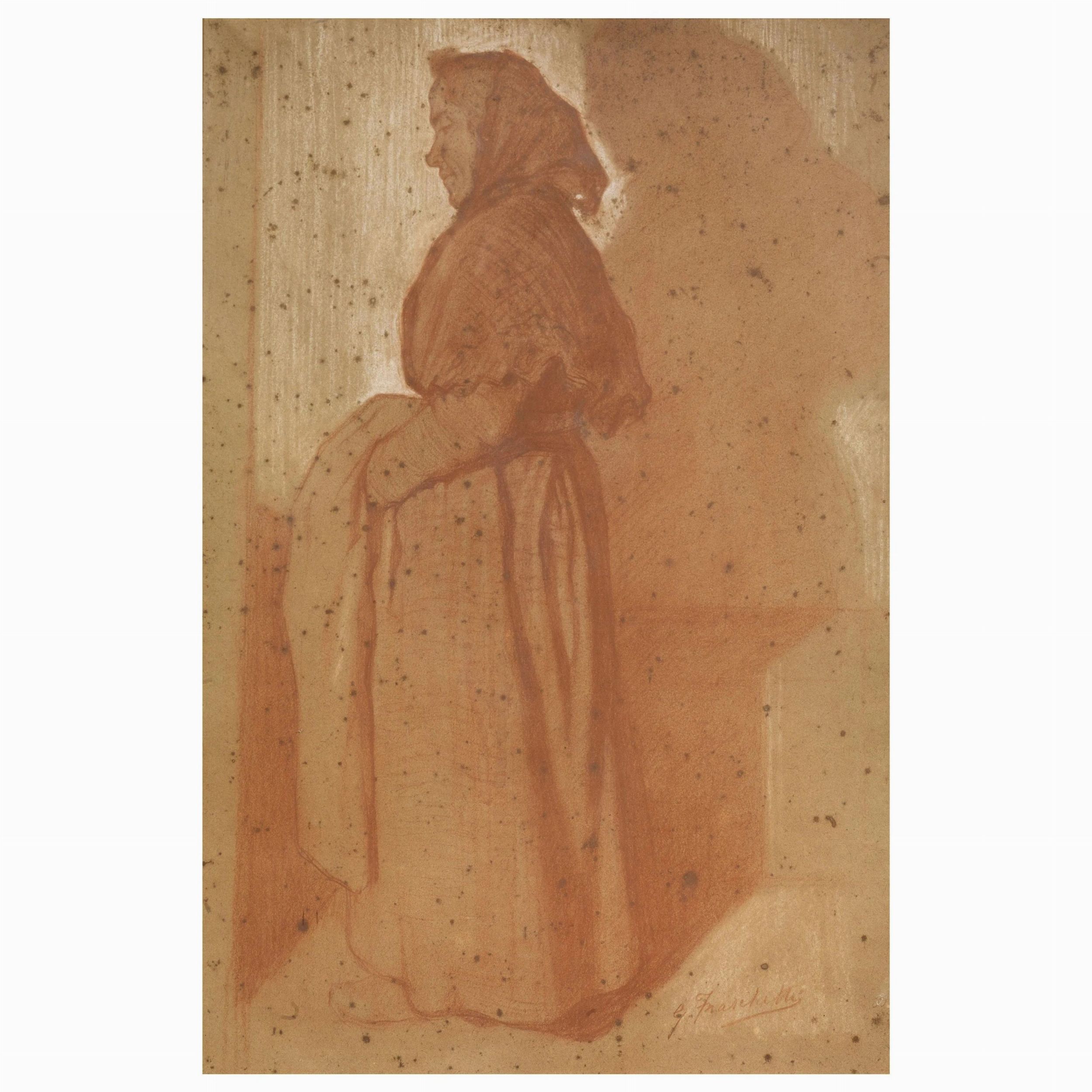 STUDY OF A PEASANT WOMAN red and white chalk, 460x295 mm on the recto, red chalk, lower right: G. Fraschetti