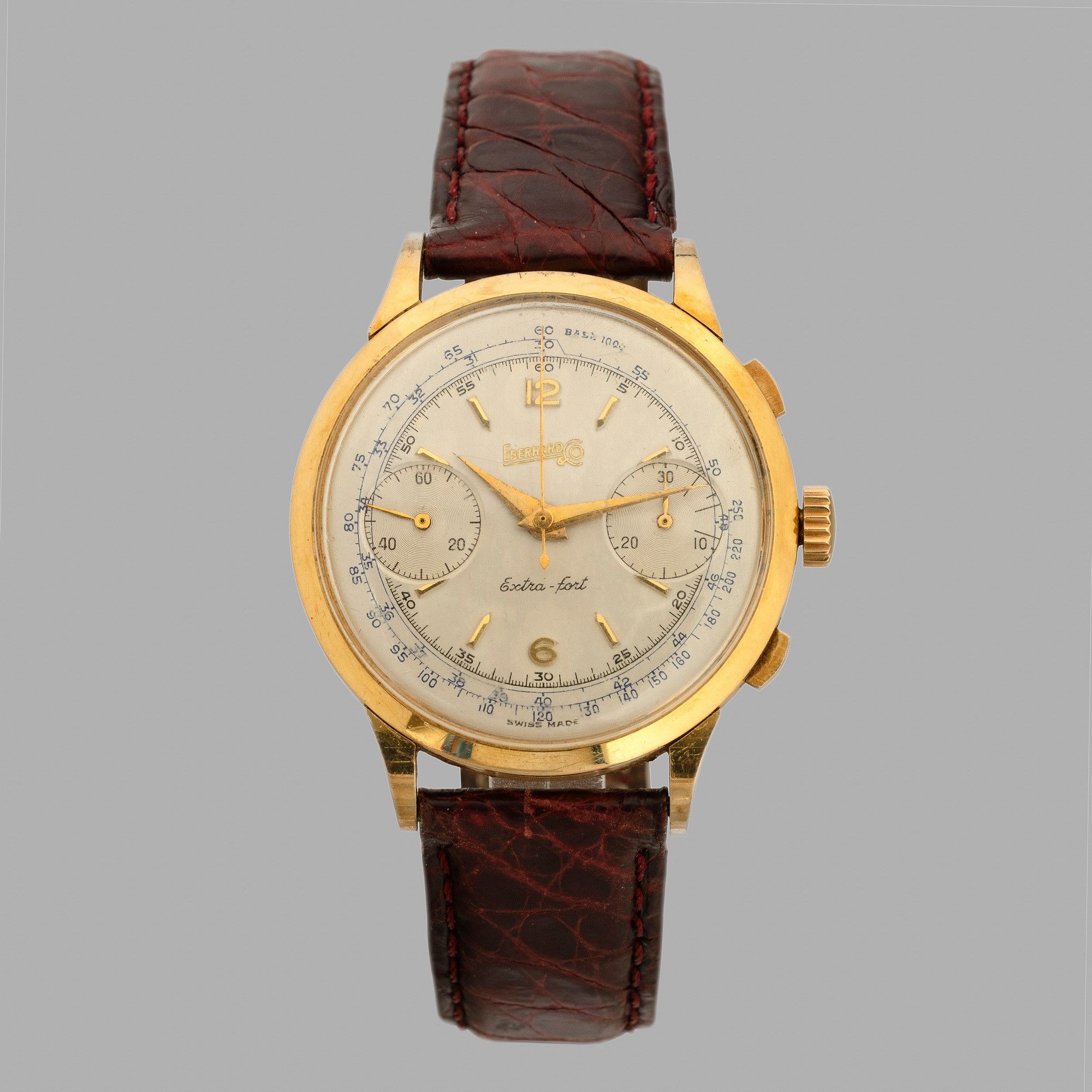 Extrafort in oro giallo 18k carica manuale, quadrante argentè due contatori e tasti [..]