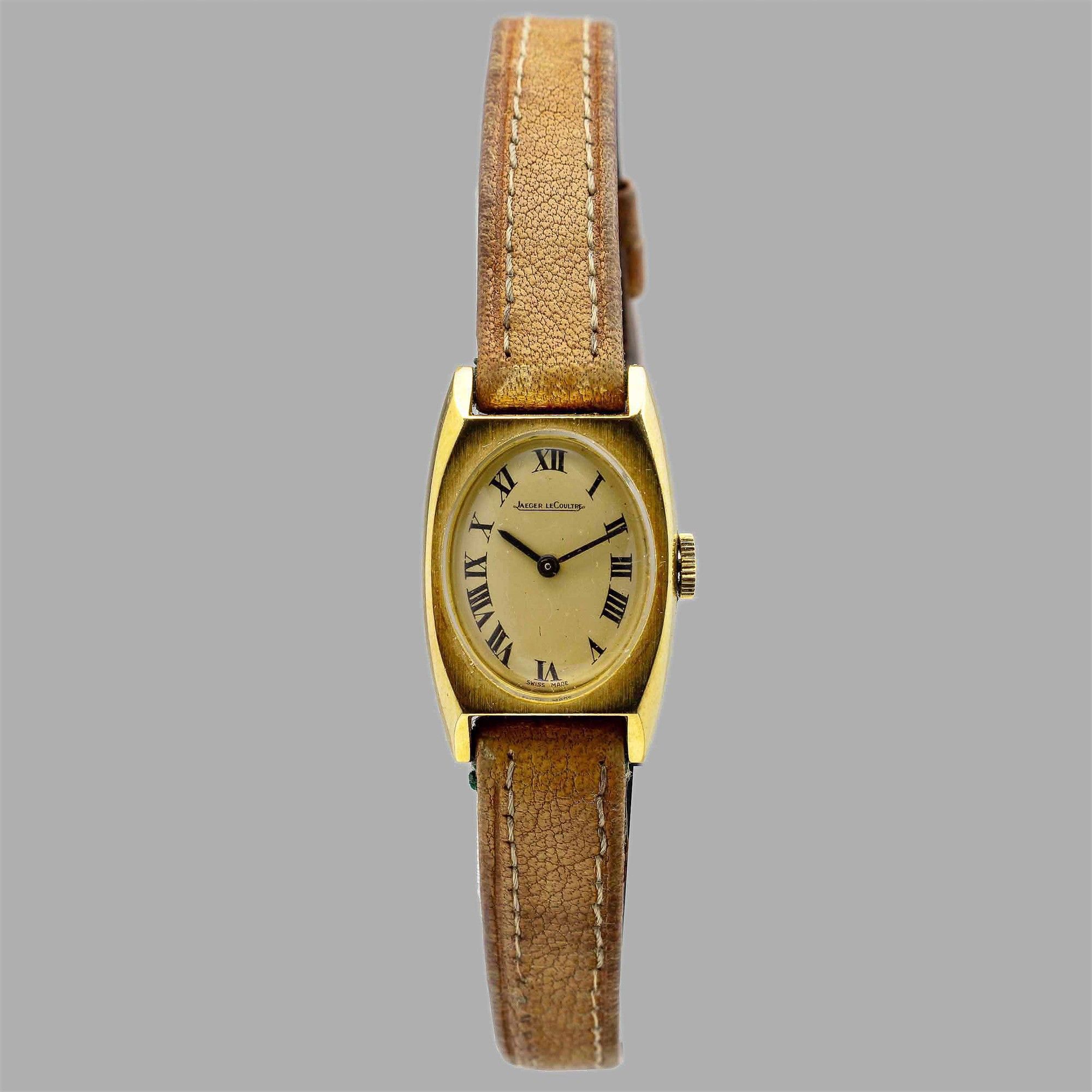 Jaeger Le Coultre Lady tonneau in oro 18k, quadrante champagne con numeri romani, [..]