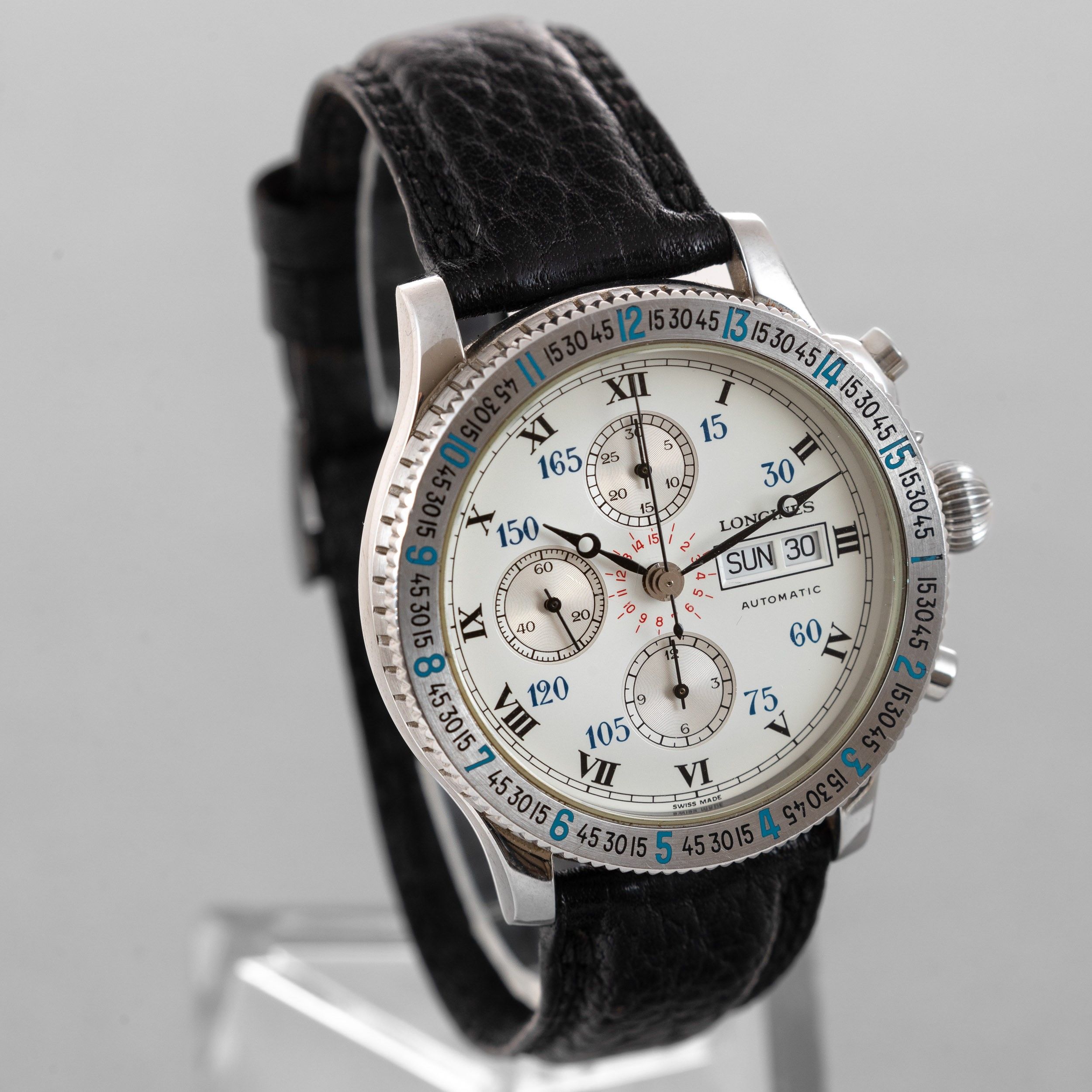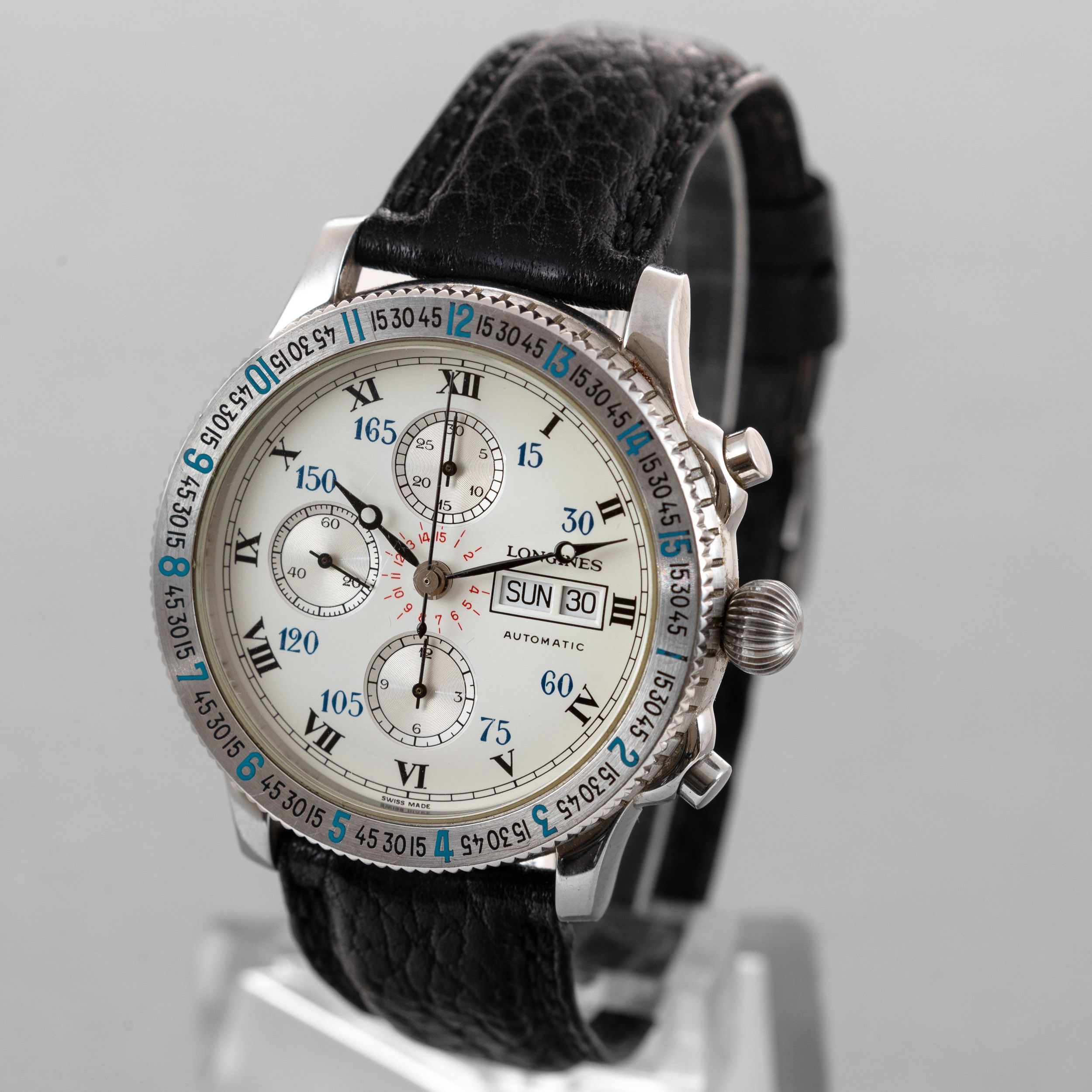 Longines Lindbergh Hour Angle in acciaio con quadrante bianco e numeri romani, datario [..]