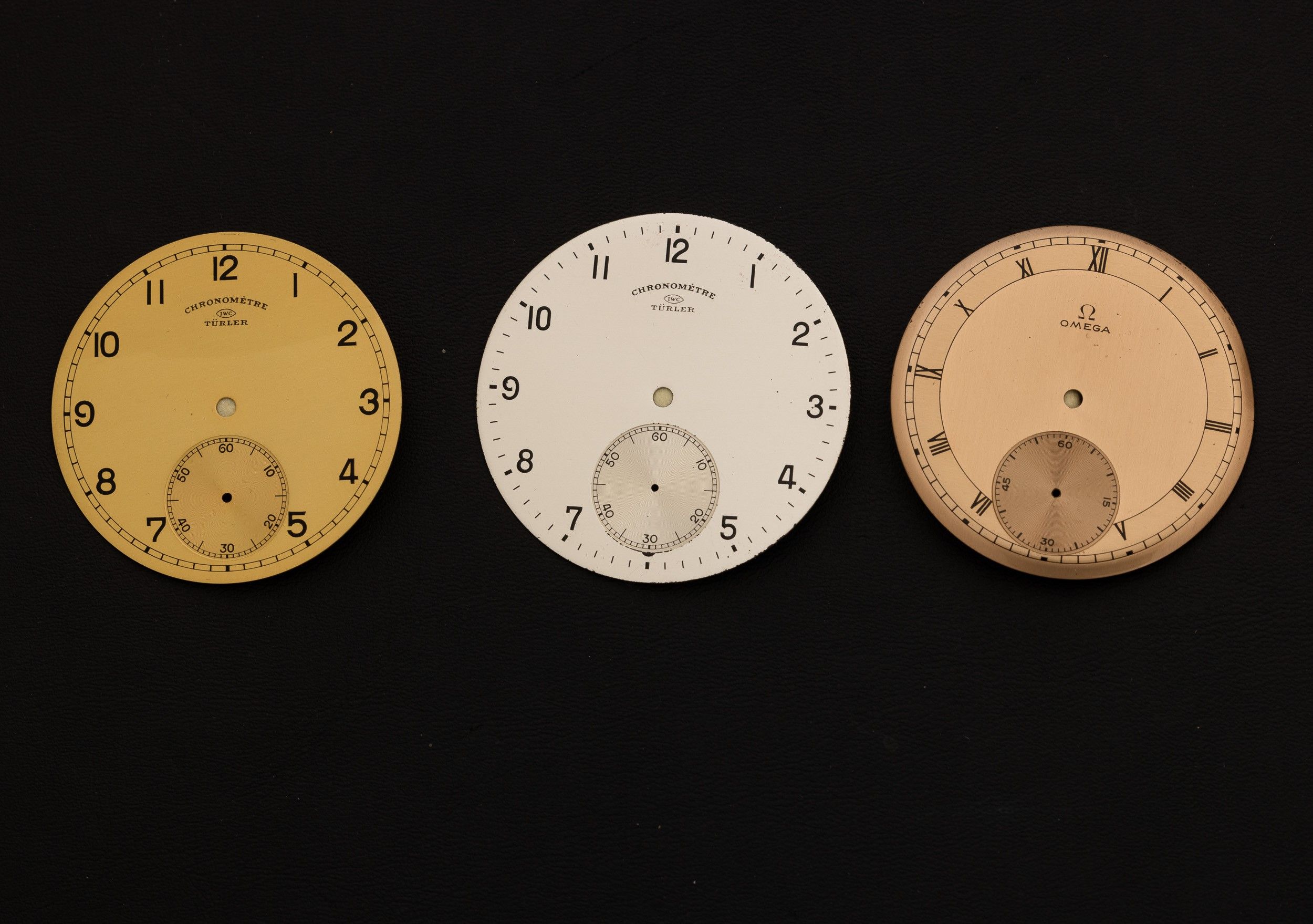 Lotto di tre quadranti IWC Champagne 40mm, Omega Salmone 40,5 mm, IWC Argento 42 [..]