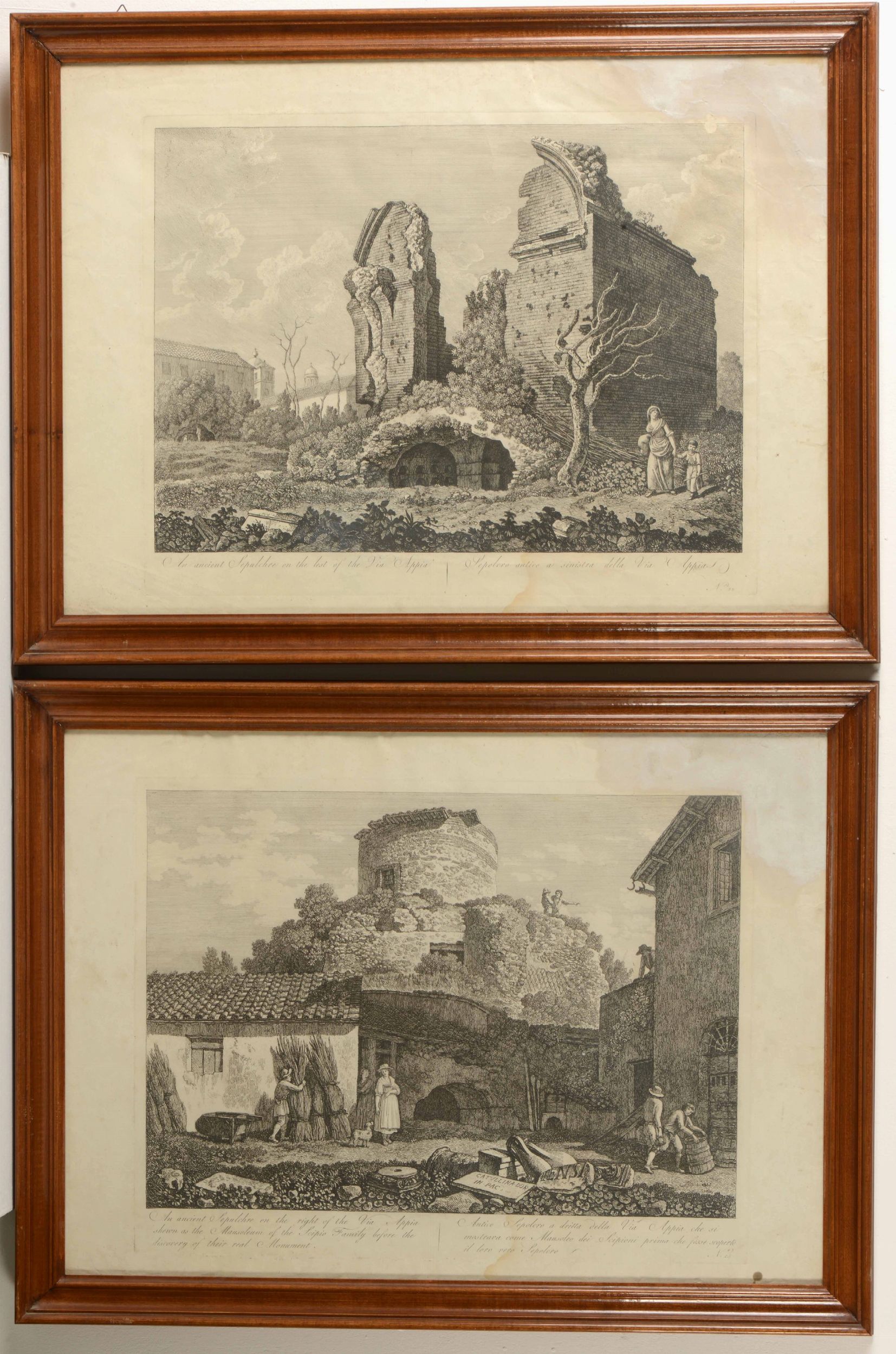 Coppia di incisioni su carta entro cornici. Roma, XIX secolo Antichità della Via [..]