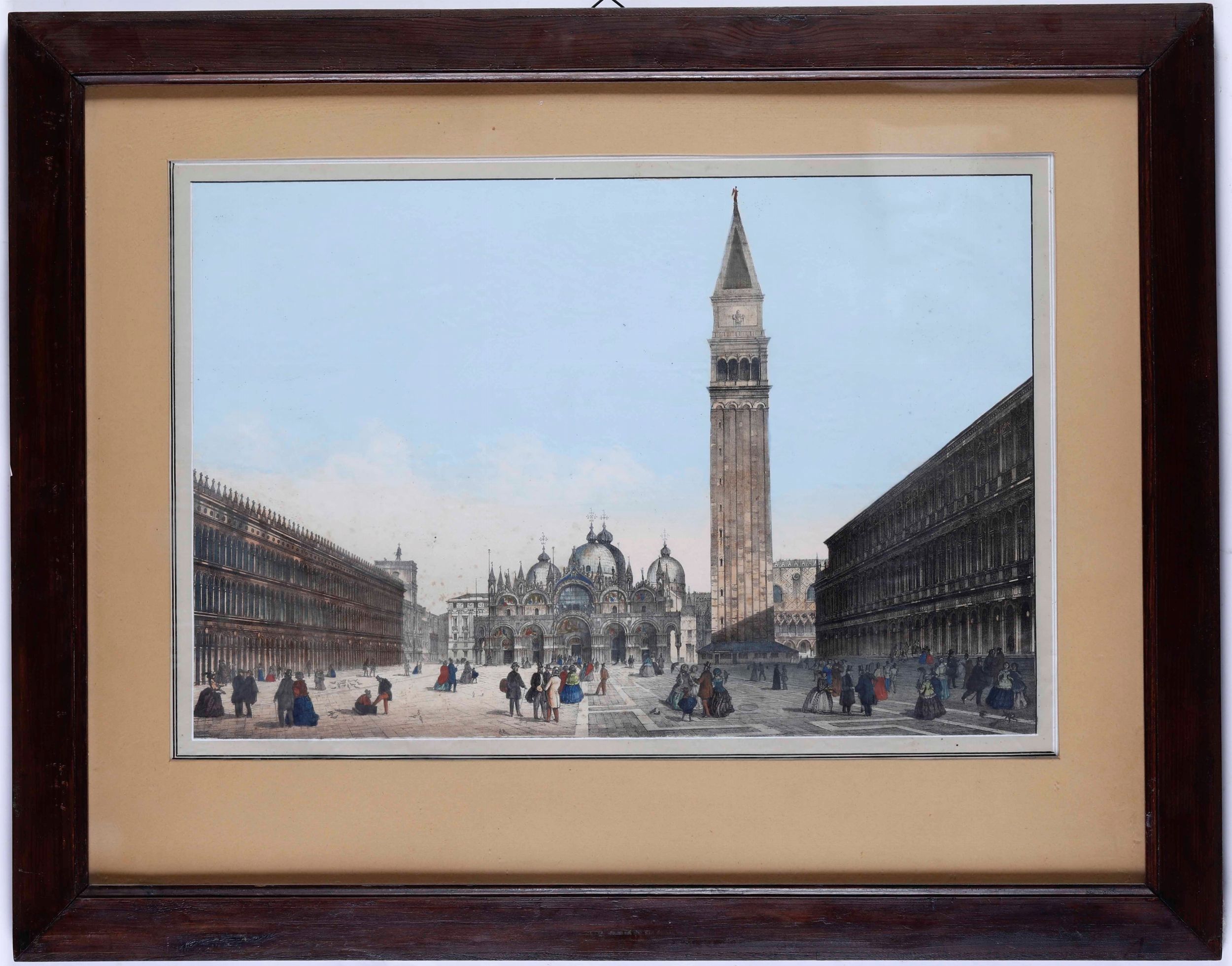 Grande litografia a colori raffigurante piazza San Marco