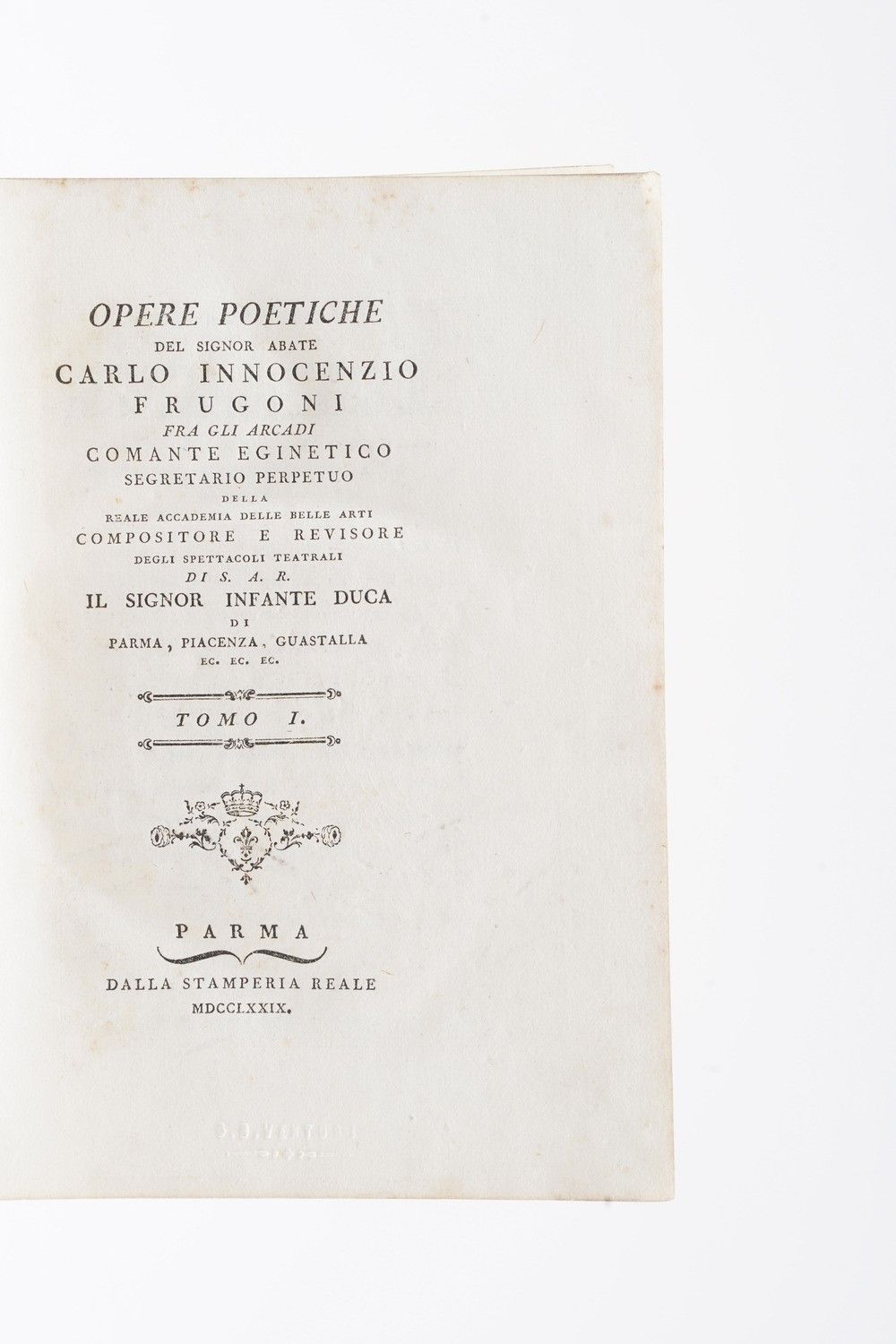 Frugoni Carlo Innocenzio Opere poetiche del Signor Abate... Parma, dalla stamperia [..]