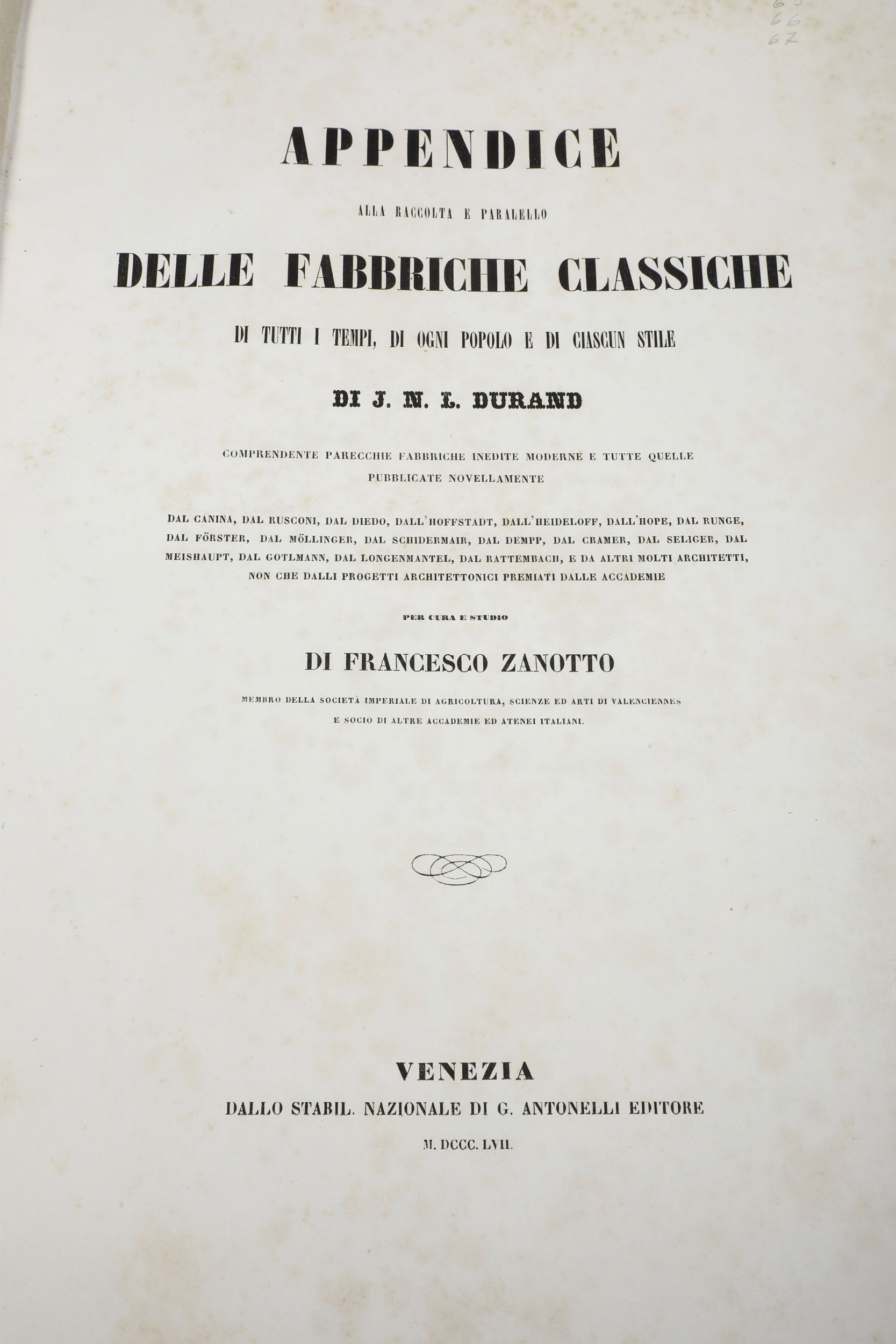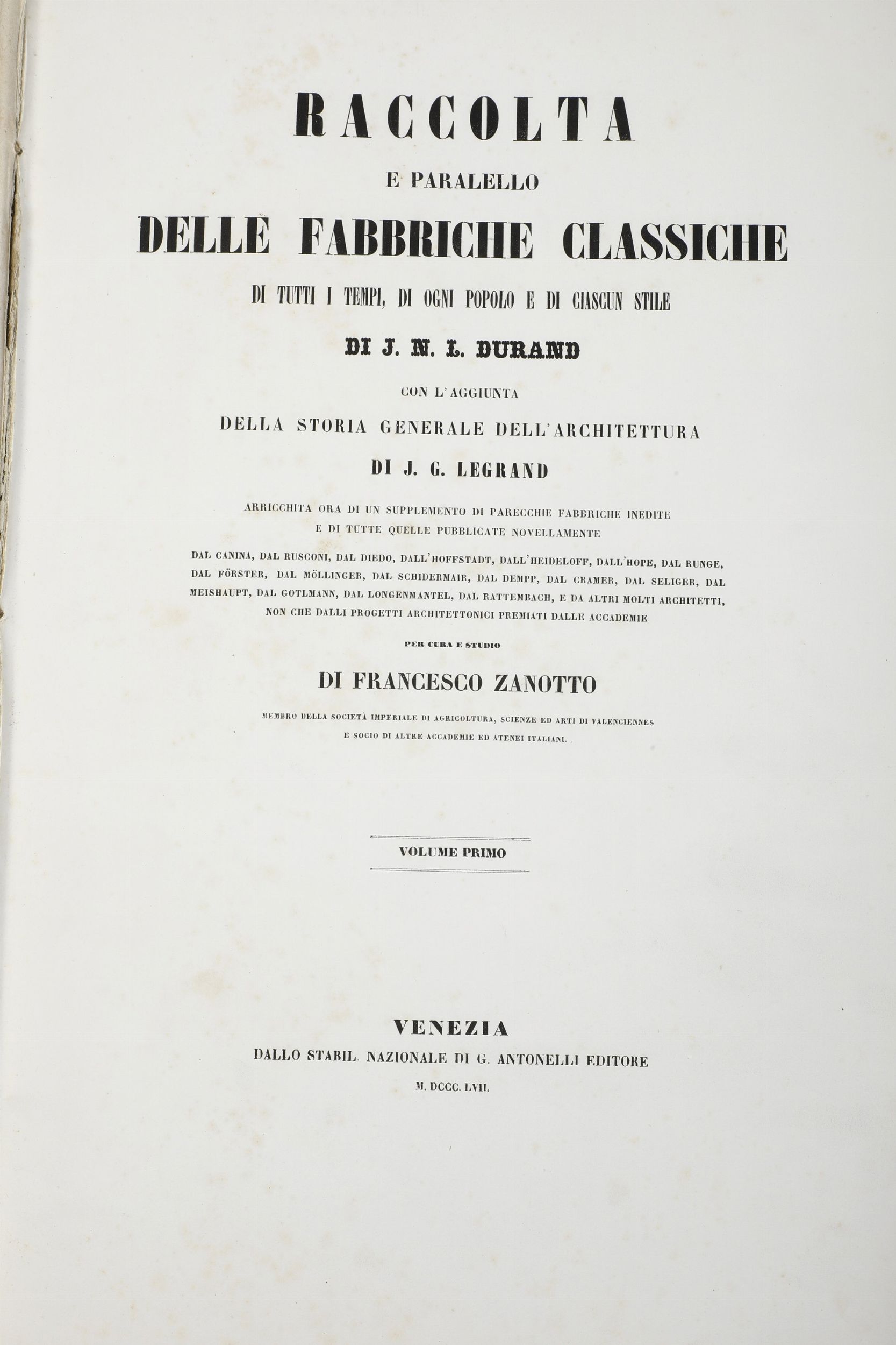 Jean Nicolas Louis Durand Raccolta e Parallelo delle Fabbriche Classiche di tutti [..]