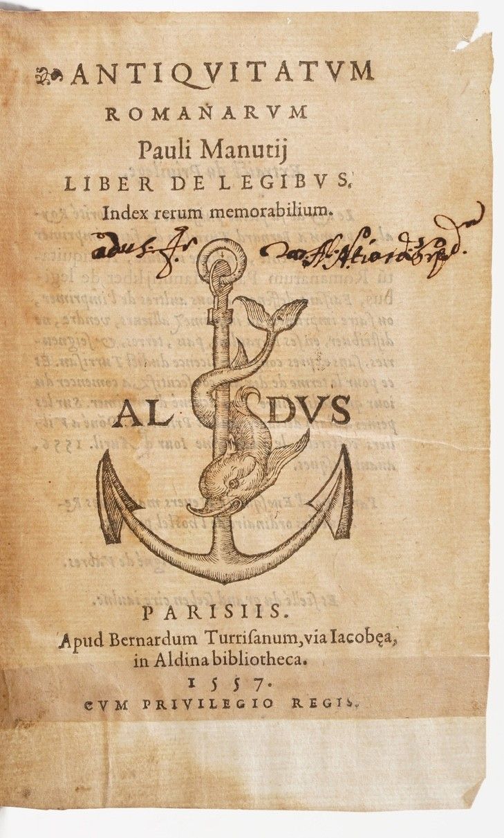 Manuzio Paolo. Antiquitatum romanarum... liber de legibus...Parigi, Berardo Torresani, [..]