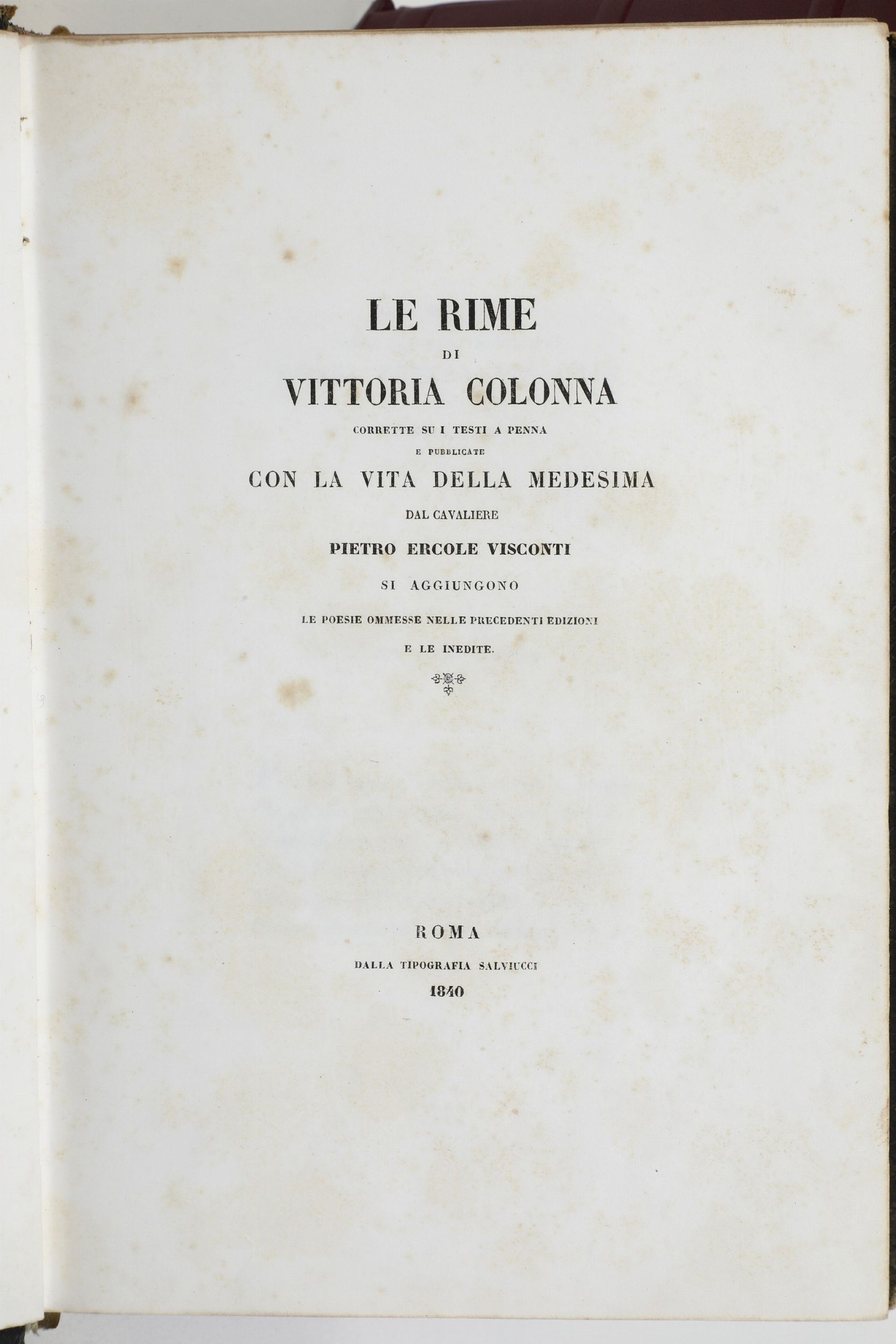Quattro opere diverse dei secoli XIX e XX Vittoria Colonna, Rime... Roma, Tipografia [..]