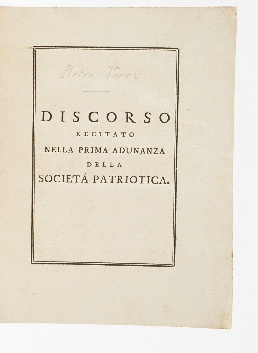 (Verri Pietro) Discorso recitato nella prima adunanza della società patriottica...In [..]