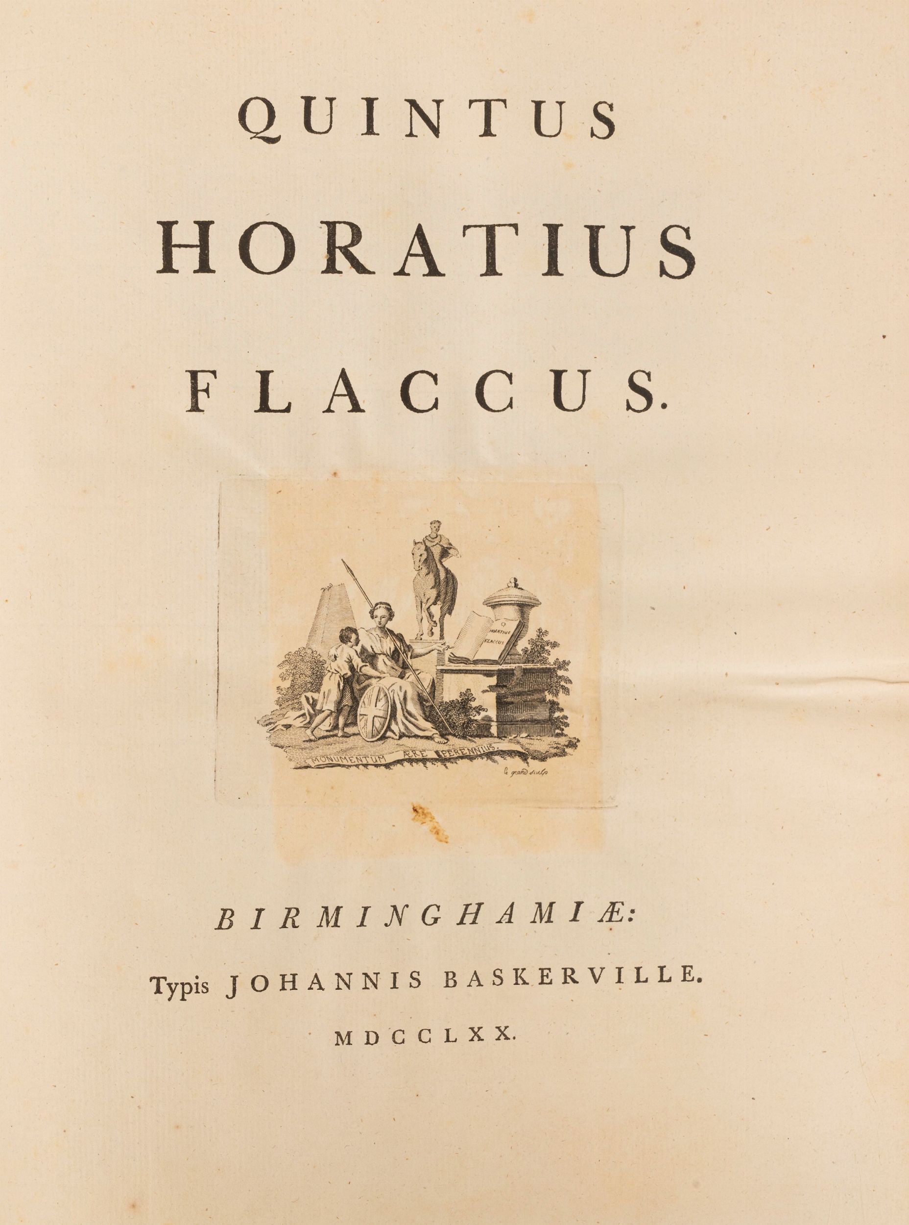 1770 Birmingham, John Baskerville, 1770. In 4° grande, 298 x 236 mm. Edizione ornata da un antiporta e 4 tavole disegnate da Gravelot. Elegante rilegatura coeva in marocchino rosso decorato in oro con fregi di fiori e vasi sui piatti, dorso a cinque nervi con fregi floreali in oro e nome dell'autore su tassello in pelle verde. Tagli dorati. Alcuni fogli appena arrossati.