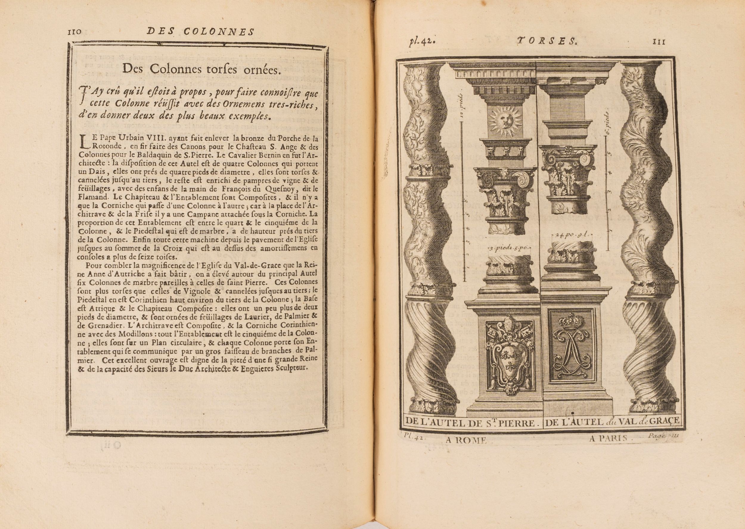 1720 Paris, Jean Mariette, 1720. In 4°. 56 tavole a doppia pagina, alcune più volte ripiegate, e 84 tavole in rame a piena pagina, bella copia nella sua legatura coeva in vitello spugnato, titolo al dorso su tassello rosso, tagli a spruzzo rossi, sciupata.