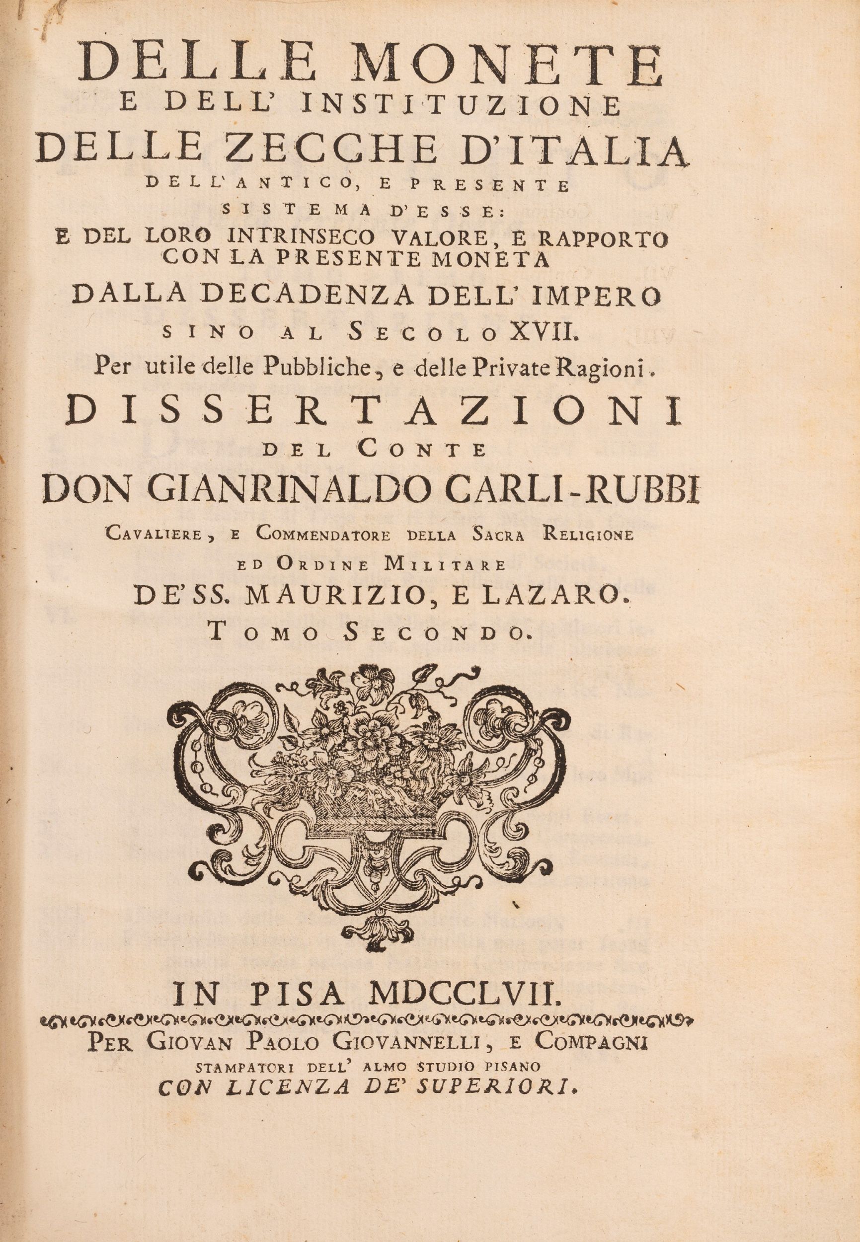 1757 Pisa, Almo Studio Pisano. In 4°. Solo tomo secondo. Fregio al frontespizio. Diverse tabelle stampate in nero. Legatura del 700 in pergamena liscia. Al dorso, liscio, tassello marrone con fregi in oro. Tagli a spruzzi rossi.