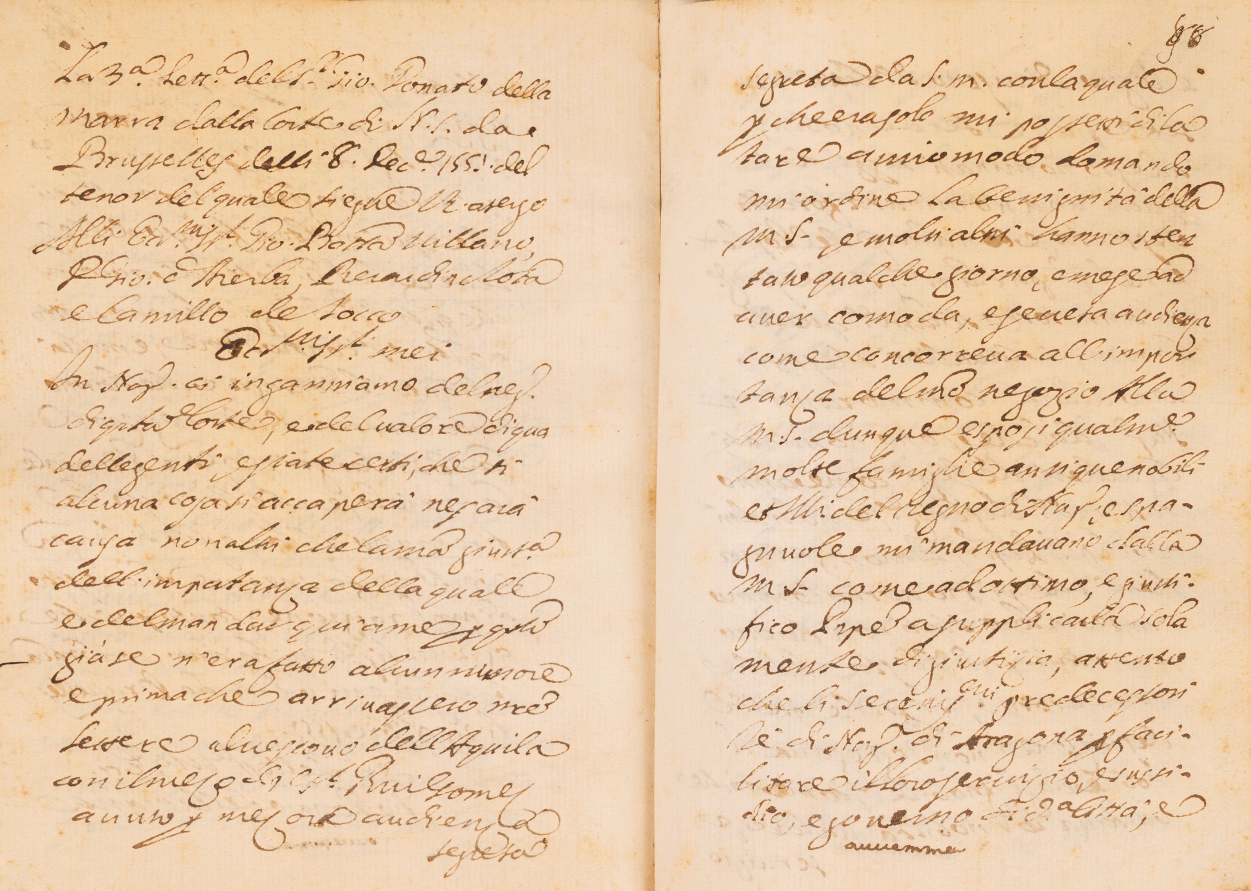 1700 Manoscritto. Legatura in pergamena piena e tassello con titolo impresso in oro. Grande interesse storico: si descrivono le piazze come luogo di governo, ĺ si svolgeva la vita politica attiva e si declamavano le leggi. Si fa riferimento al regno di Roberto d'Angị (1278-1343). Leggere bruniture e danni alla legatura del libro.