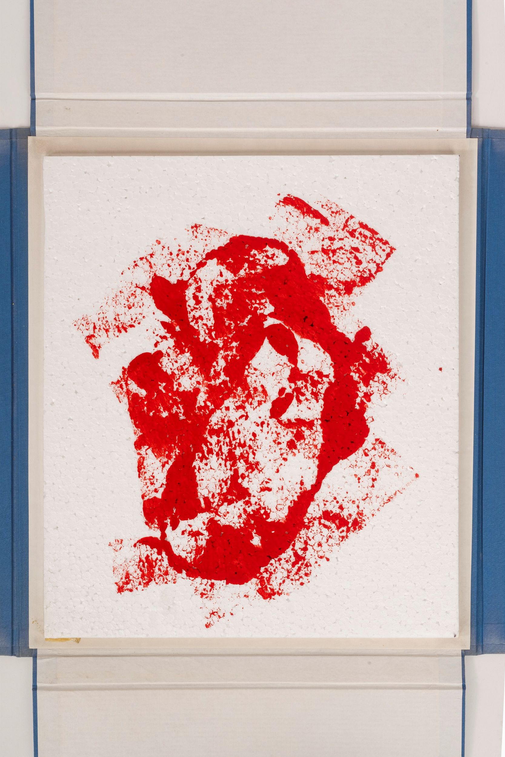 1970 S.n.t., 1970. In 4° quadrato. Volume a fogli sciolti contenente una poesia inedita di Giuseppe Ungaretti e 9 serigrafie a colori di Paolo Dorazio, entro custodia rigida in tela azzurra, titolo in oro, leggera scoloritura della tela. Esemplare fuori numerazione, PROVA D'ARTISTA, contenente una tavola dipinta su polistirolo .