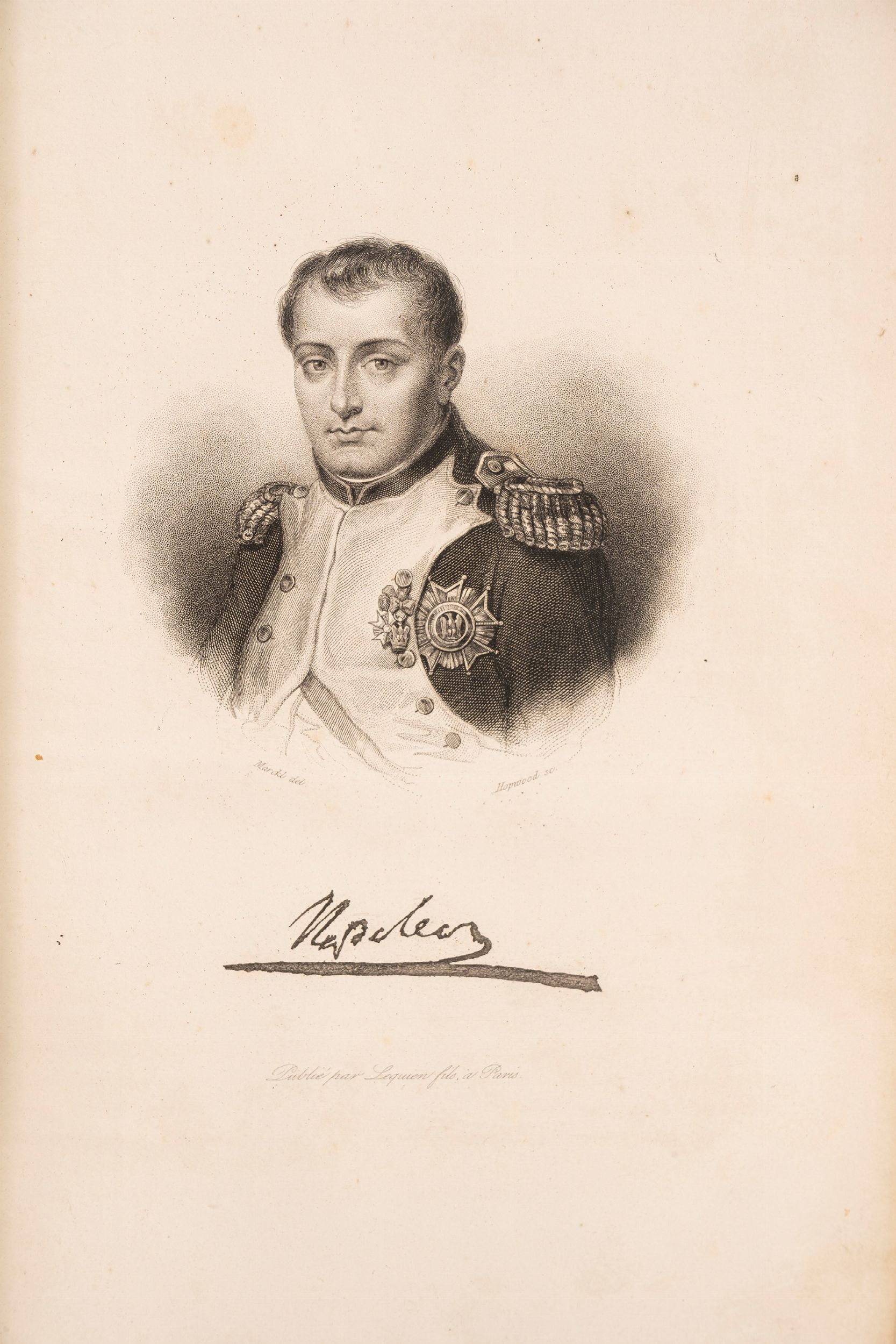 1835 Paris, Lequien Fils, 1835. In 4°. 2 voll. Ritratto di Napoleone ad opera di Marckl, tavole fuori testo, bruniture e arrossature, legature coeve in mezza pelle rossa, difetti e mancanze.
