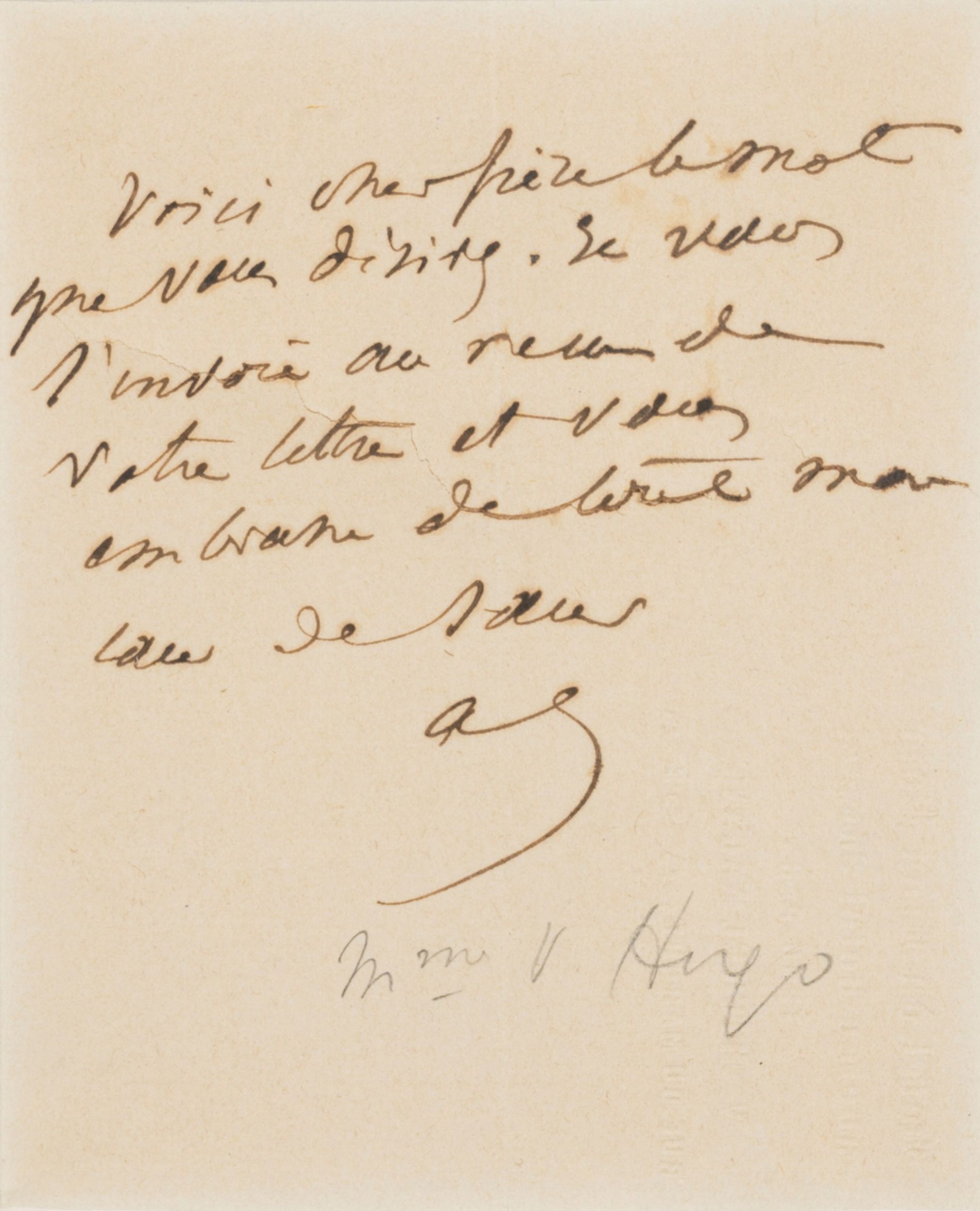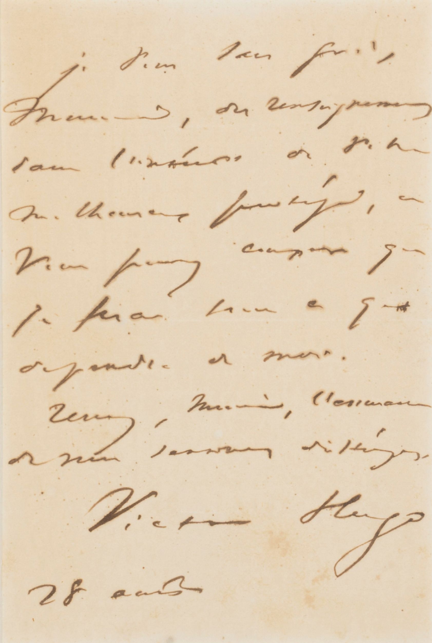 1800 Bell'insieme di 5 lettere autografe e firmate, una della moglie di Hugo che scrive al fratello, in cornici verdi 270 x 330 mm., diverse misure.