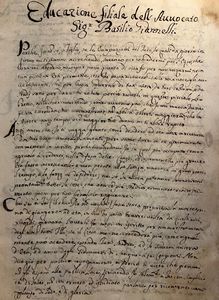 1700 Manoscritto. Legatura in pergamena piena e tassello con titolo impresso in oro. Grande interesse storico: [..]