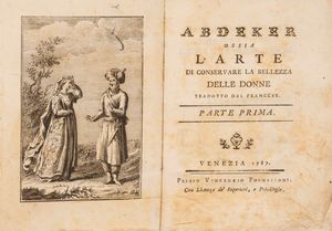 1787 Venezia, Formaleoni, 1787. In 12°, 2 parti, antiporta, fioriture, legatura coeva in cartonato. § Pietro Bortolotti. [..]