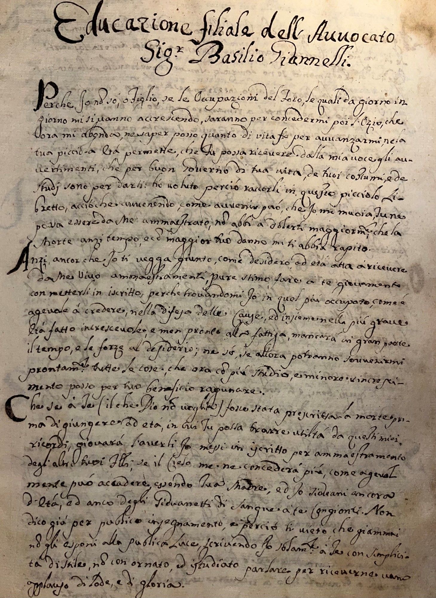 Manoscritto - Educazione filiale del sig. Avvocato Basilio Giannelli.