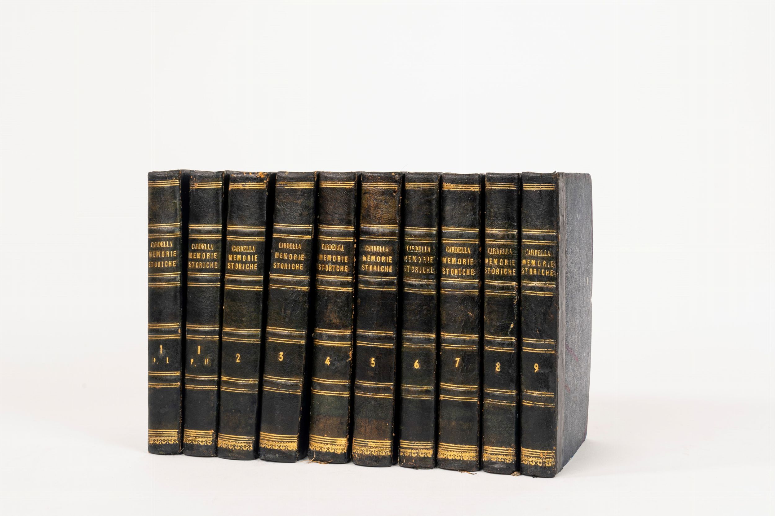 1792 Roma, Pagliarini, 1792-97. 10 volumi. In 8°. Frontespizio inciso con lo stemma di papa Pio VI Braschi, fioriture e brunitura. Legatura in mezza pelle blu, titolo impresso in oro al dorso liscio, difetti.