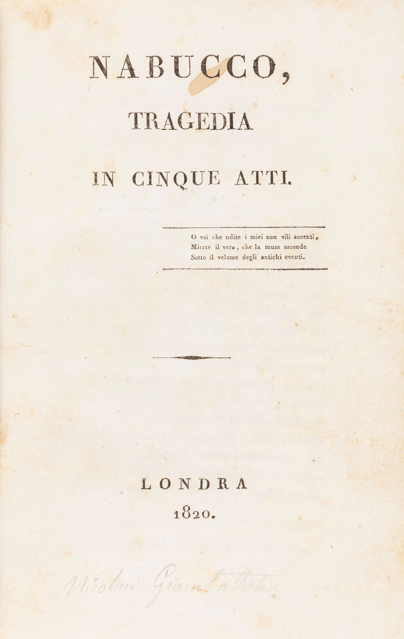 Giovanni Battista Niccolini : Nabucco  - Asta Libri, Autografi e Stampe - Associazione Nazionale - Case d'Asta italiane
