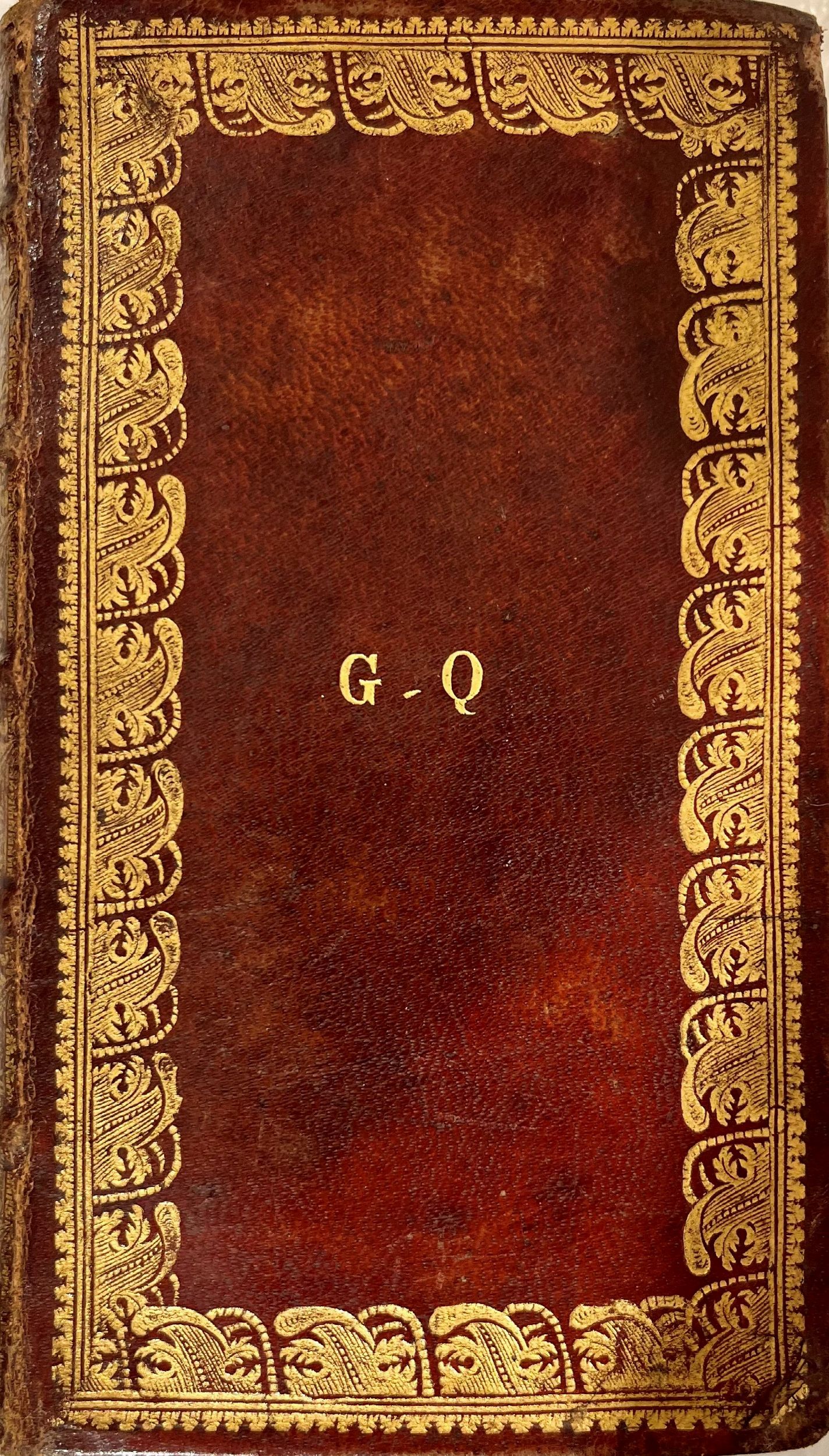 1741 Napoli Carlo Mosca, 1741. Frontespizio con effige della Madonna in tondo con raggi. Illustrazione in bianco e nero del Pontefice a piena pagina. Dopo l'incisione, testo in bilingue latino ed ebraico. In fondo al libro una tabella in bianco e nero più volte ripiegata. Legatura in marocchino marrone con piatti incorniciati da festoni incisi in oro e, al centro del campo, le iniziali in oro G Q. Dorso con cinque nervi e decorazioni in oro. Tagli dorati. Qualche macchia.