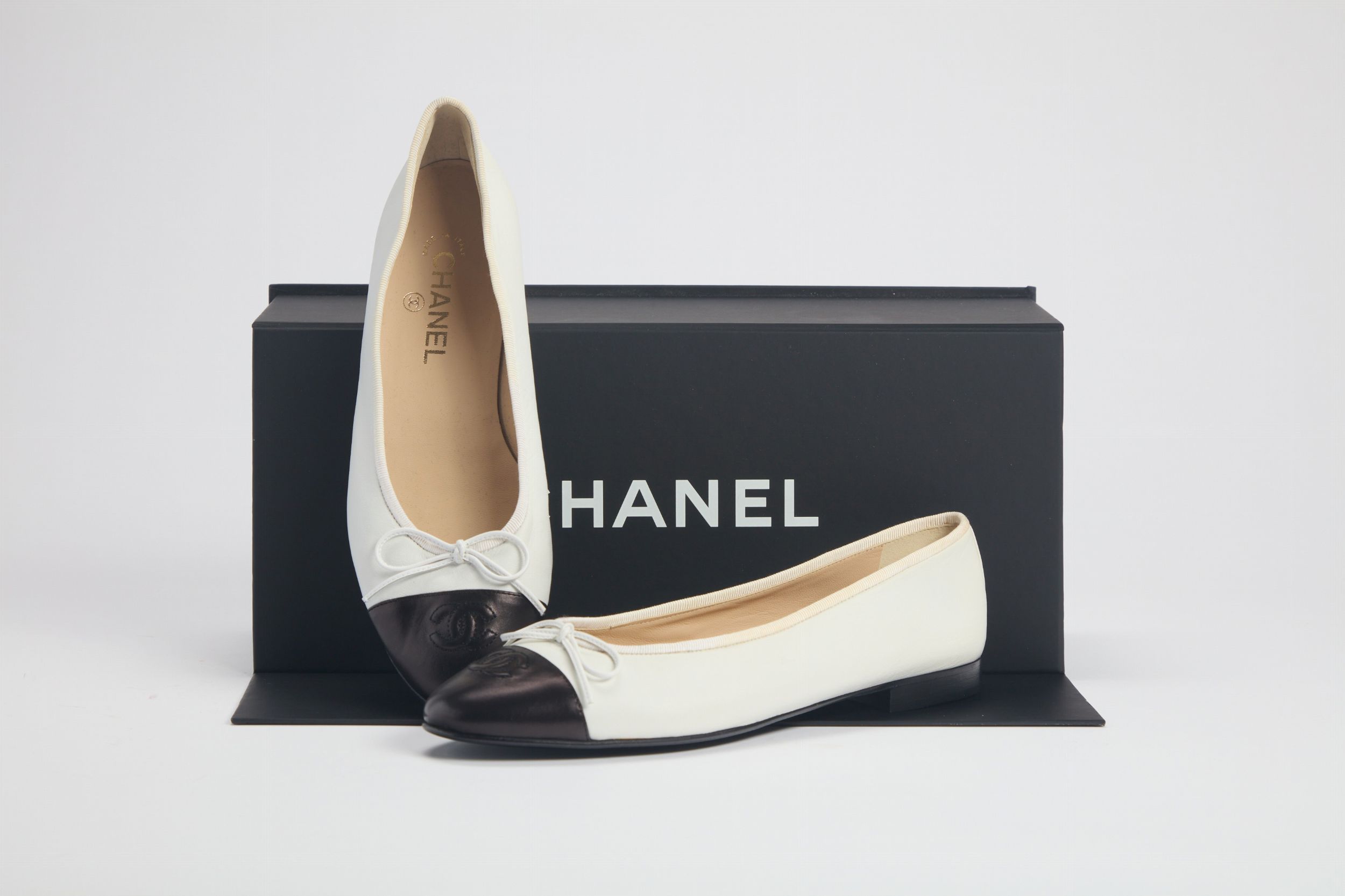 in pelle bicolore nero e bianco, misura 40 1/2, con sacchetti e scatola (nuove e mai usate)
