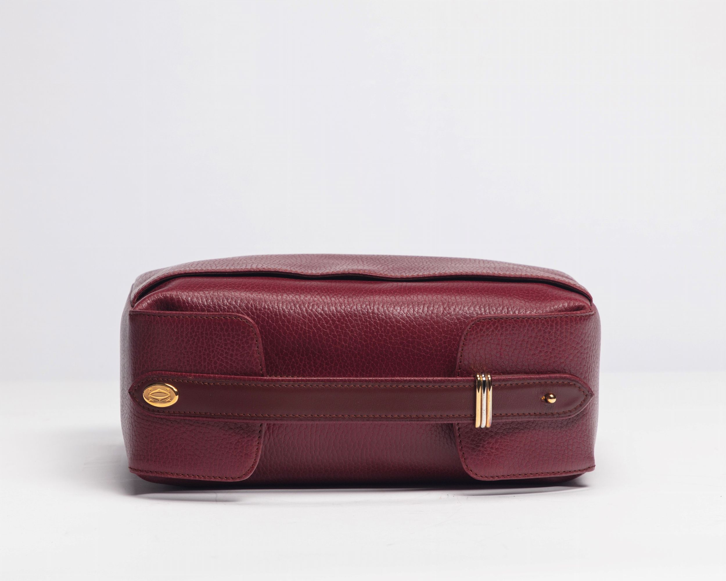 in pelle martellata color burgundy, dettagli in metallo tricolore, cm 27, con sacchetto