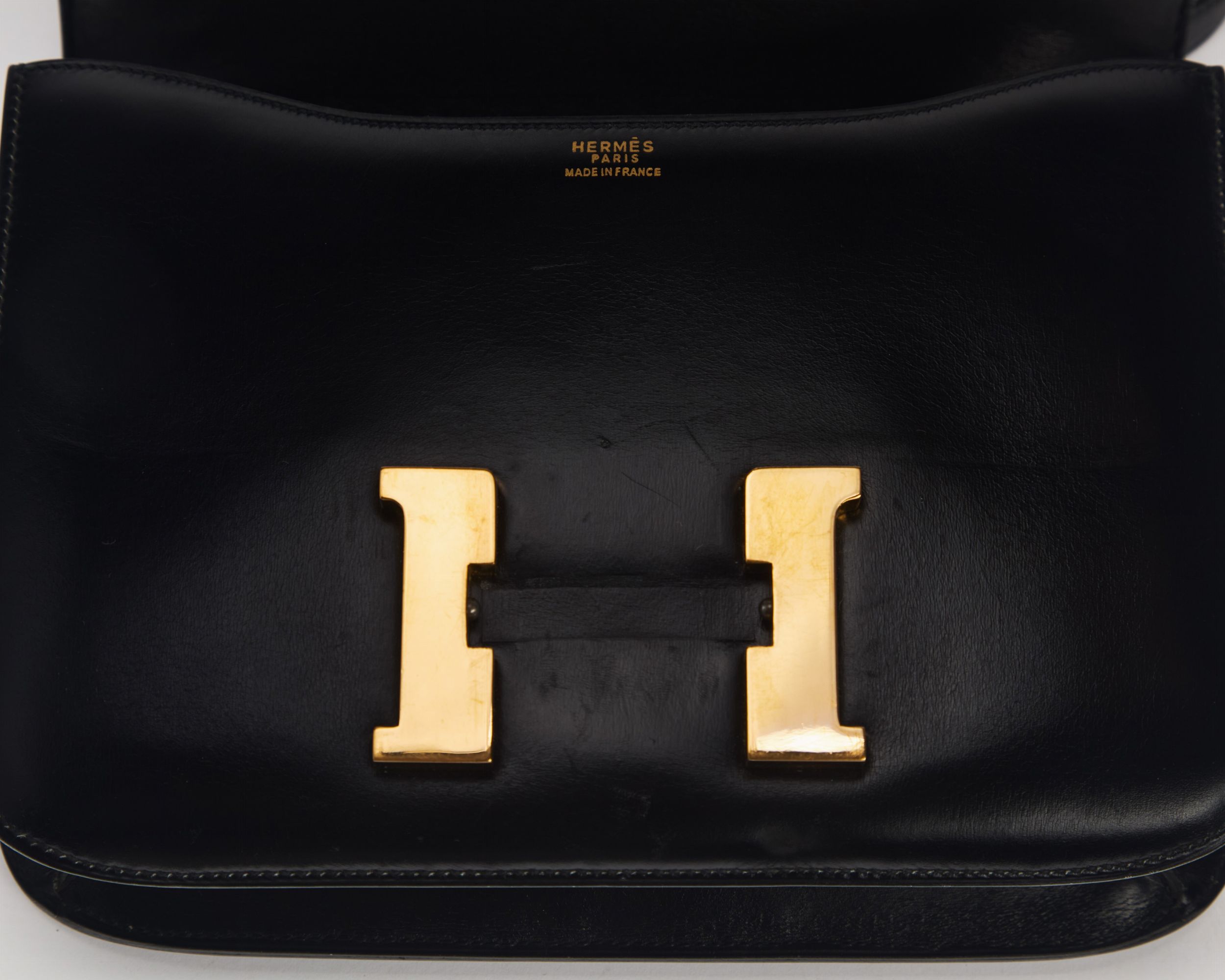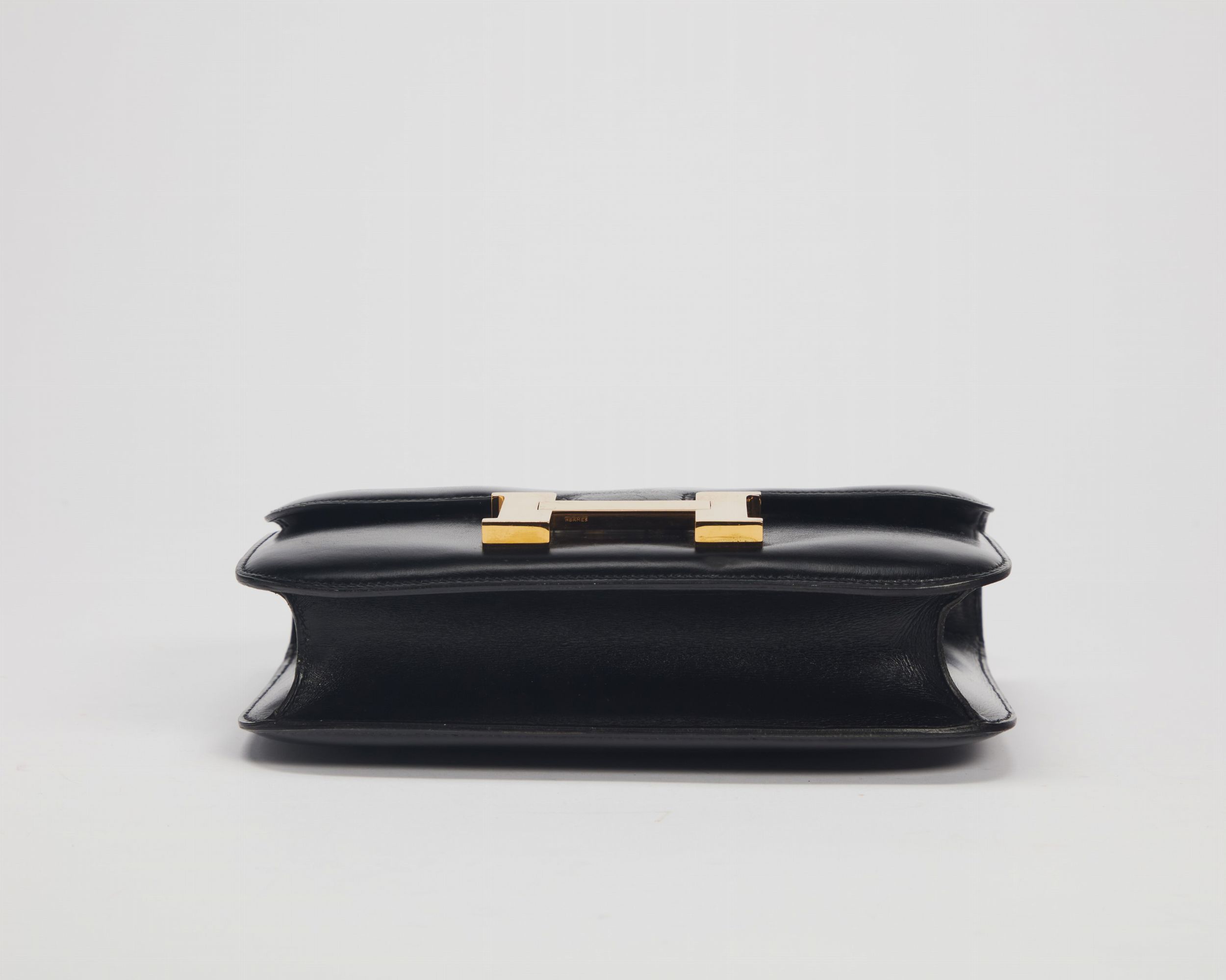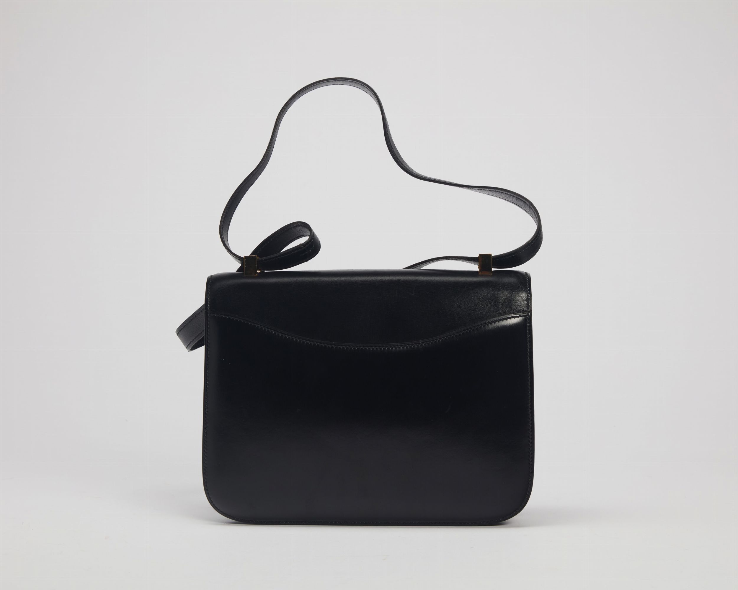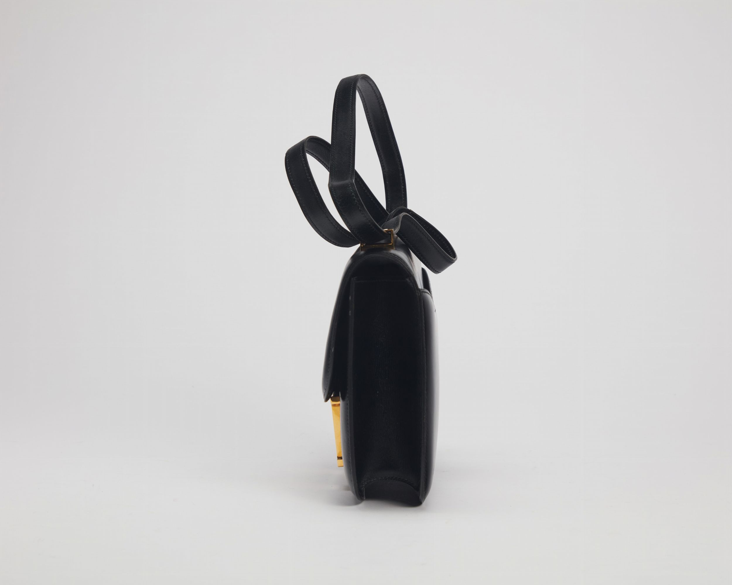 1980 in pelle box color nero, dettagli in metallo dorato, cm 23 (difetti)