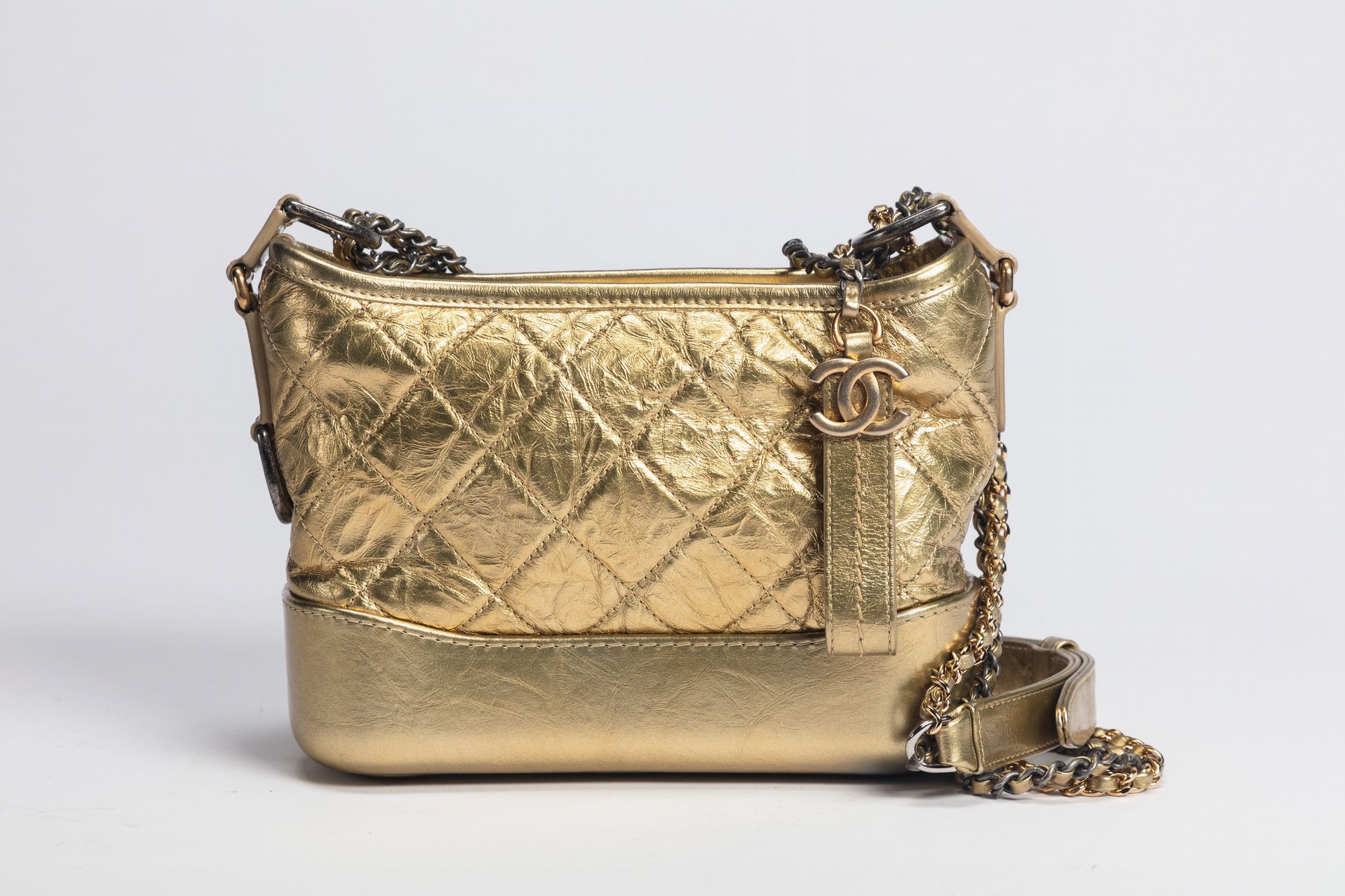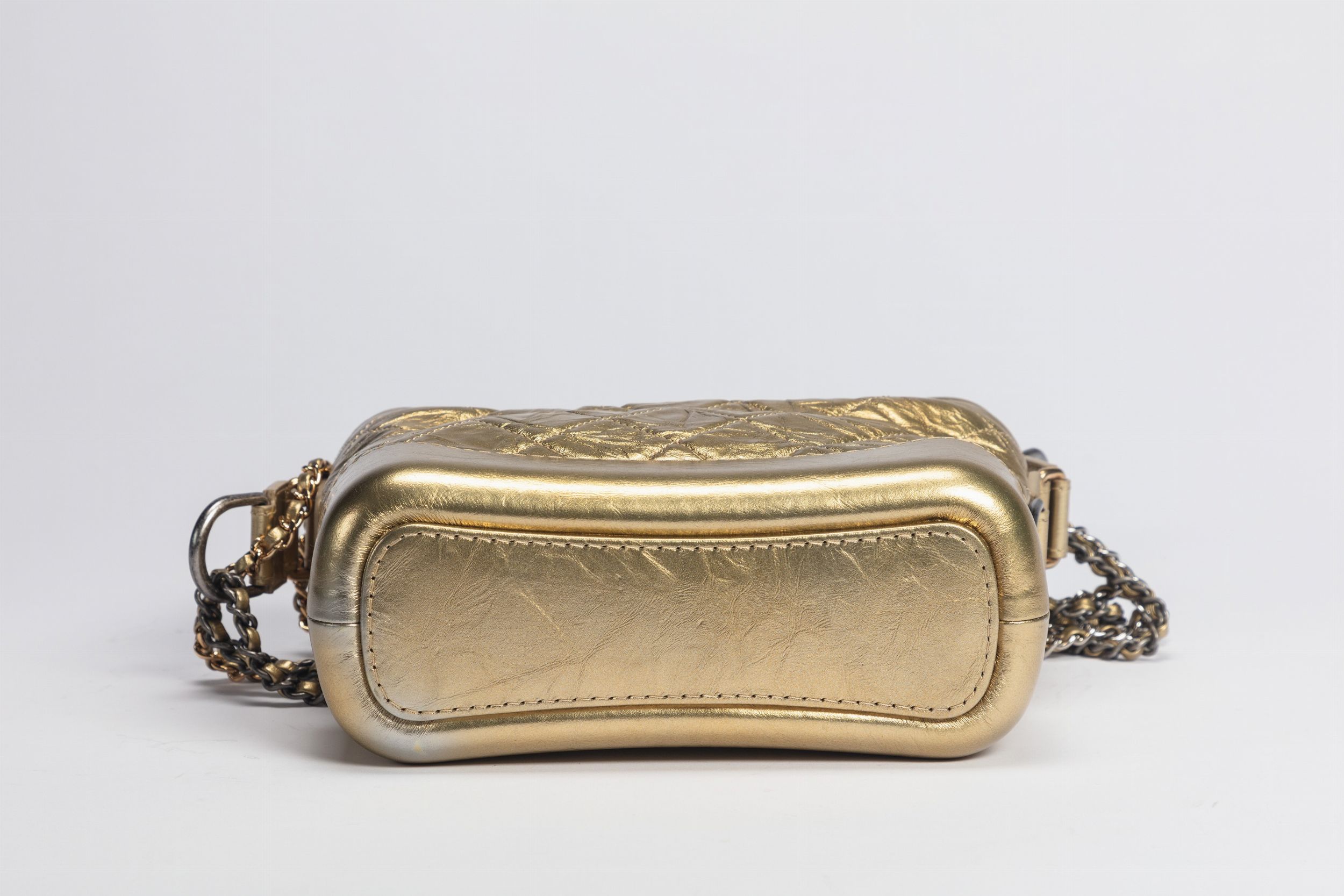 2017 in pelle matelassé color oro, tracolla a catena in metallo bicolore, cm 20 (lievissimi difetti)