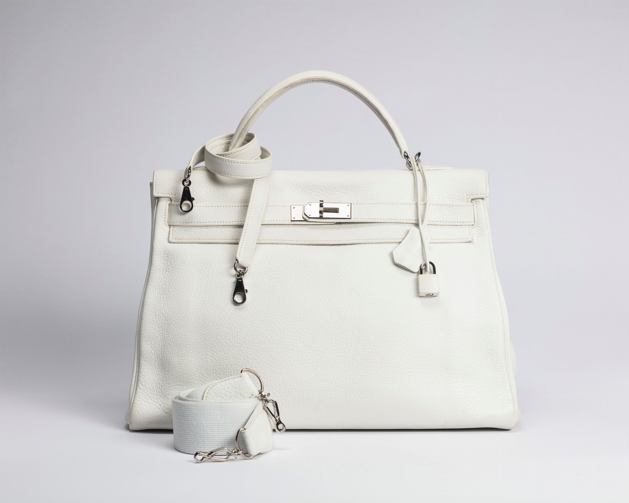 2007 in pelle clémence color bianco, dettagli in palladio, doppia tracolla staccabile , cm 40 (difetti)