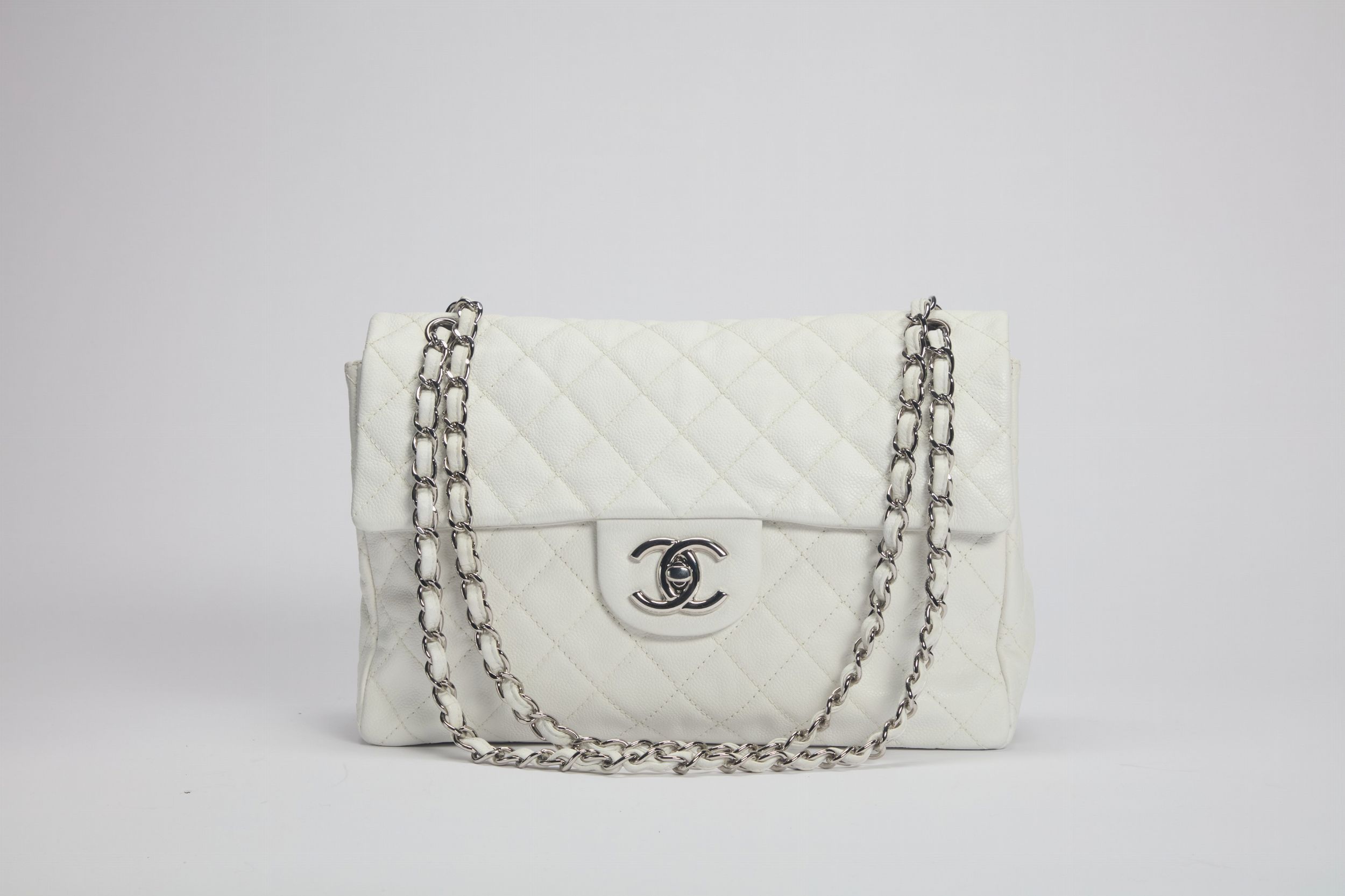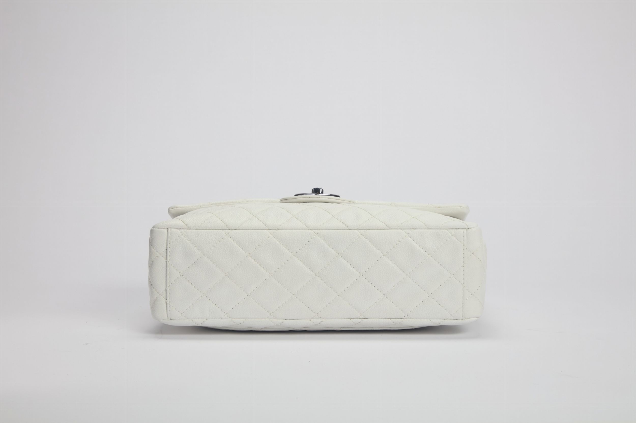 2008 in pelle caviar color bianco, dettagli in metallo, tracolla a catena, cm 33