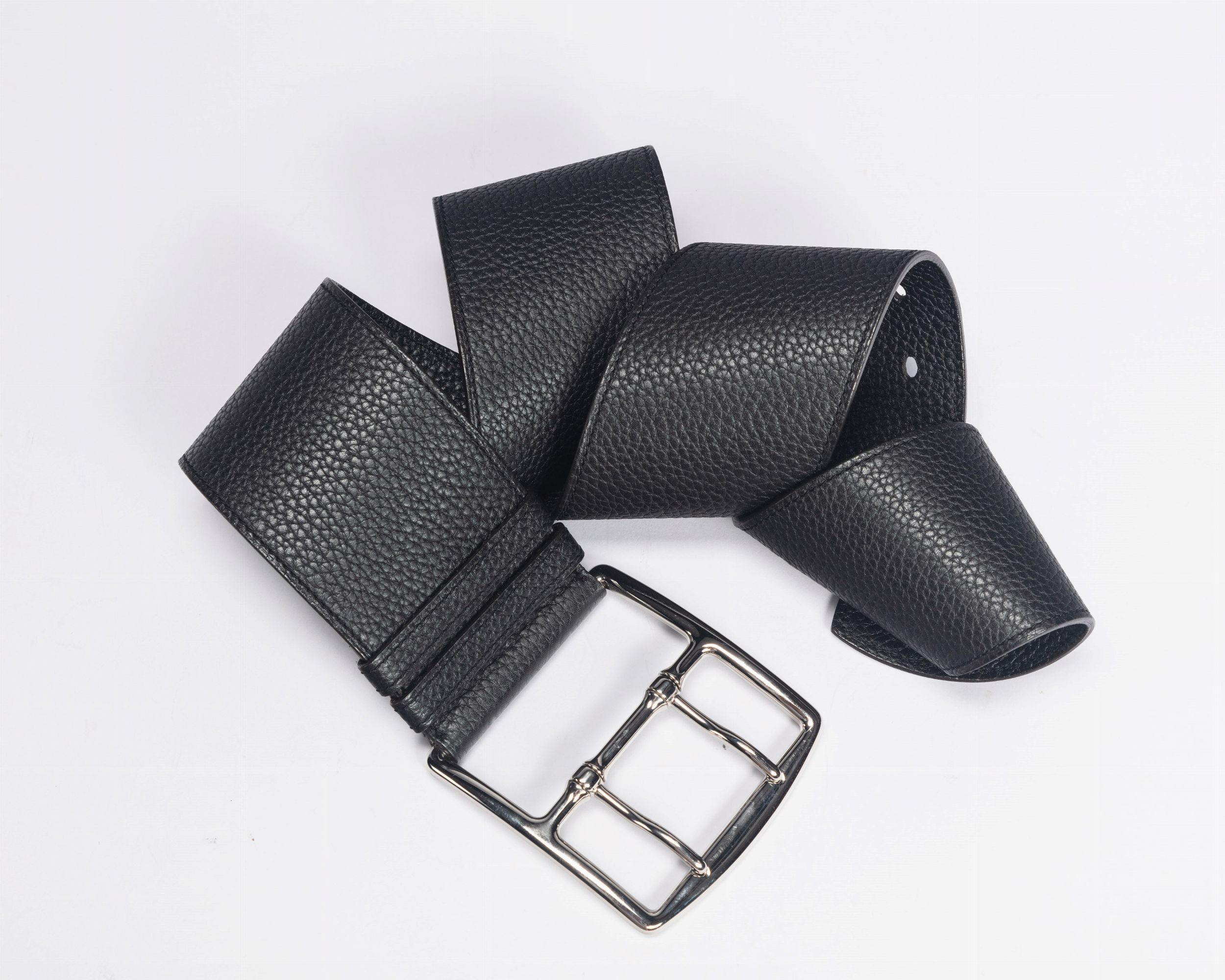 2012 in pelle clémence color nero, grande fibbia di chiusura in metallo, cm 80 x 7