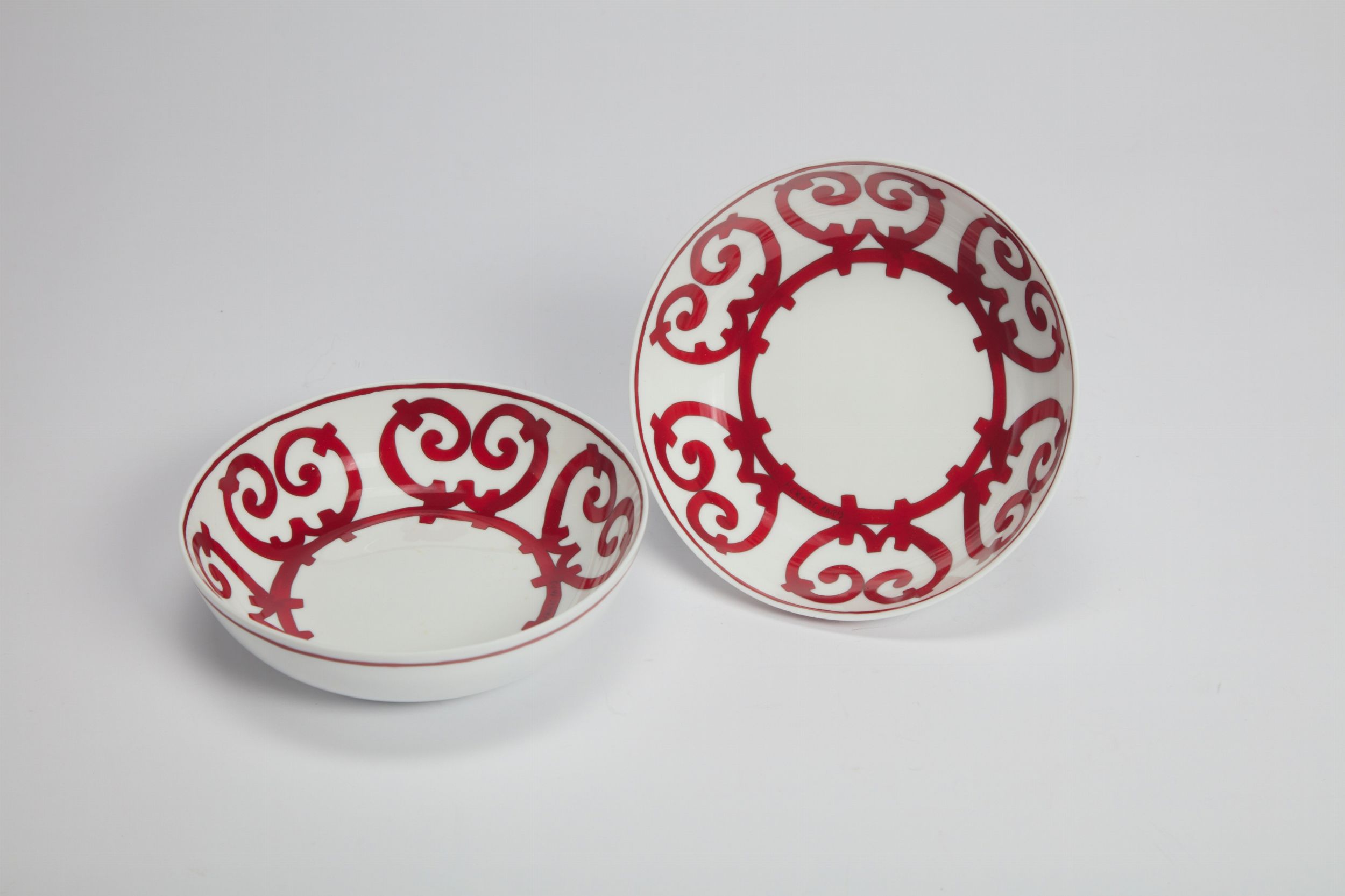 in porcellana bianca con decoro rouge Guadalquivir, dm cm 17, con scatola