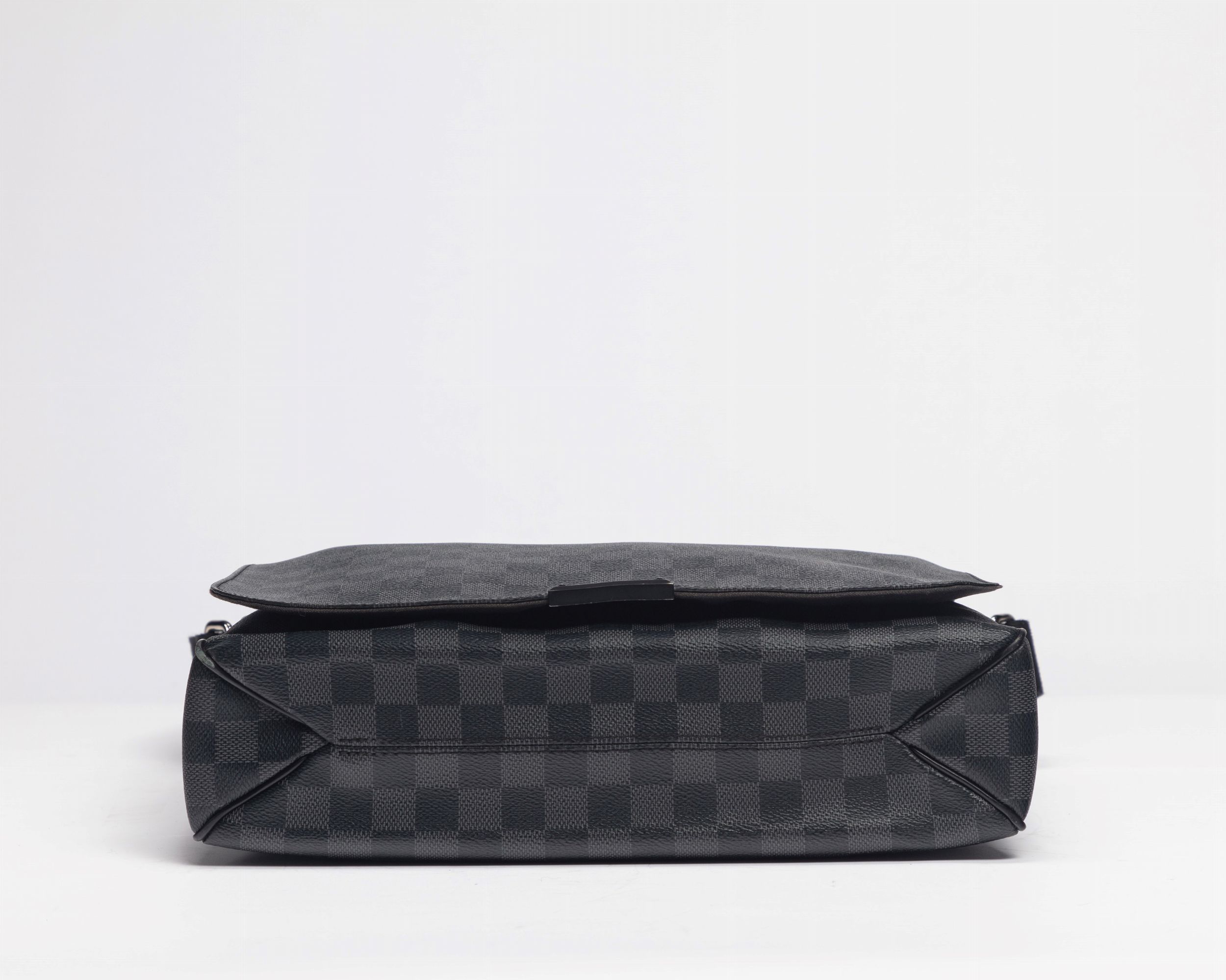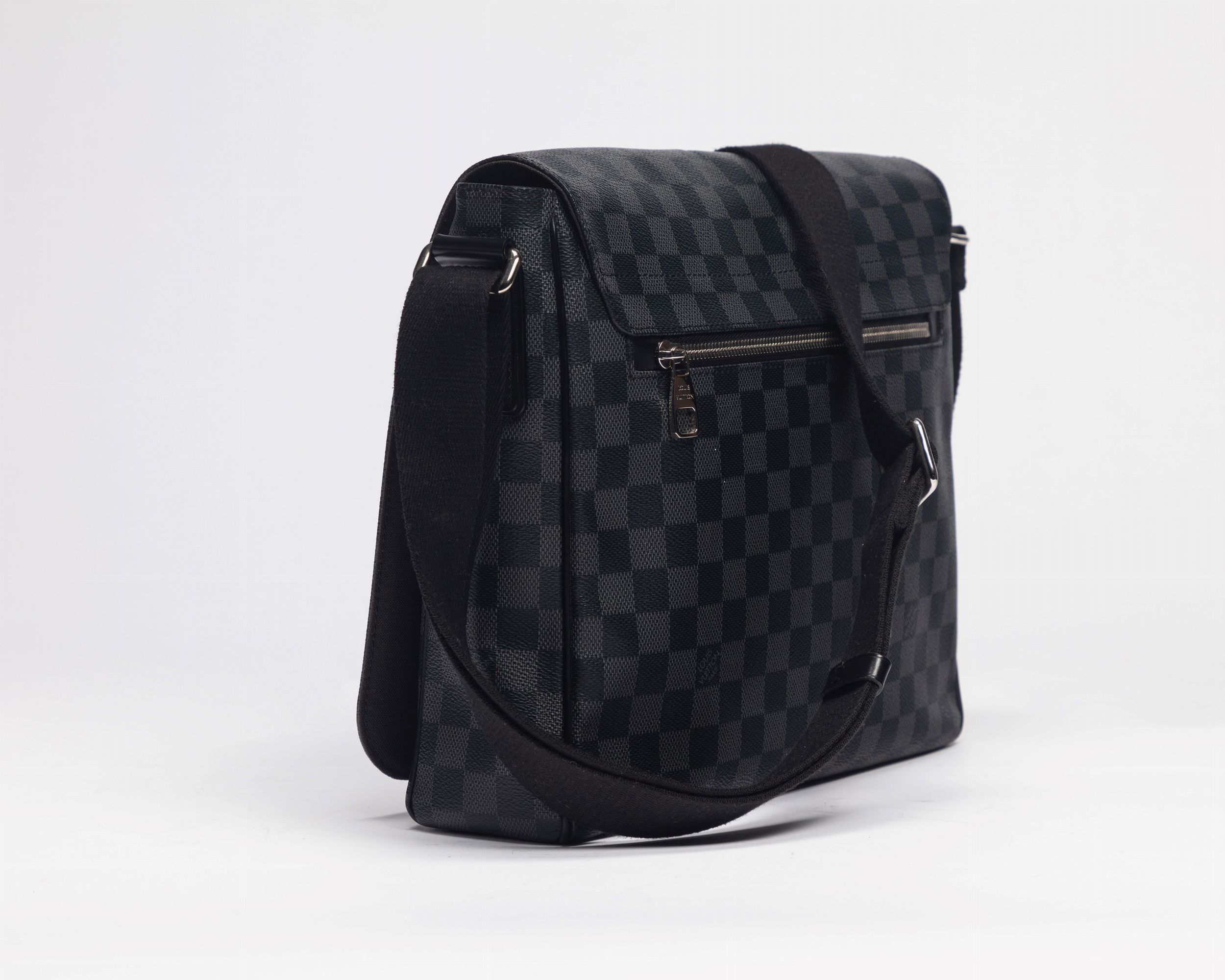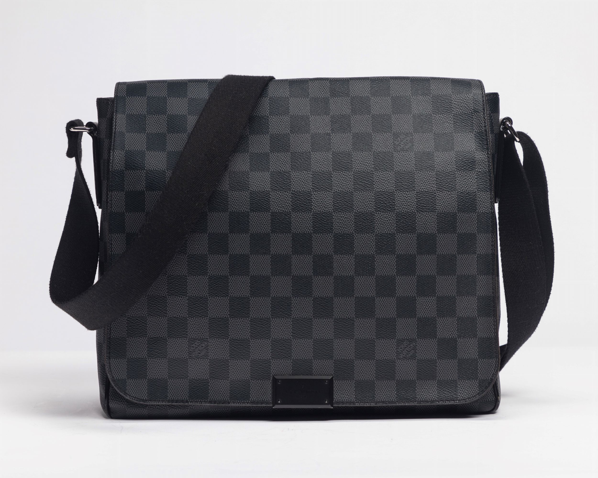 2016 in tela damier color grafite, tracolla in tessuto regolabile, dettagli in metallo, interno con doppio scomparto, chiusura magnetica, cm 31