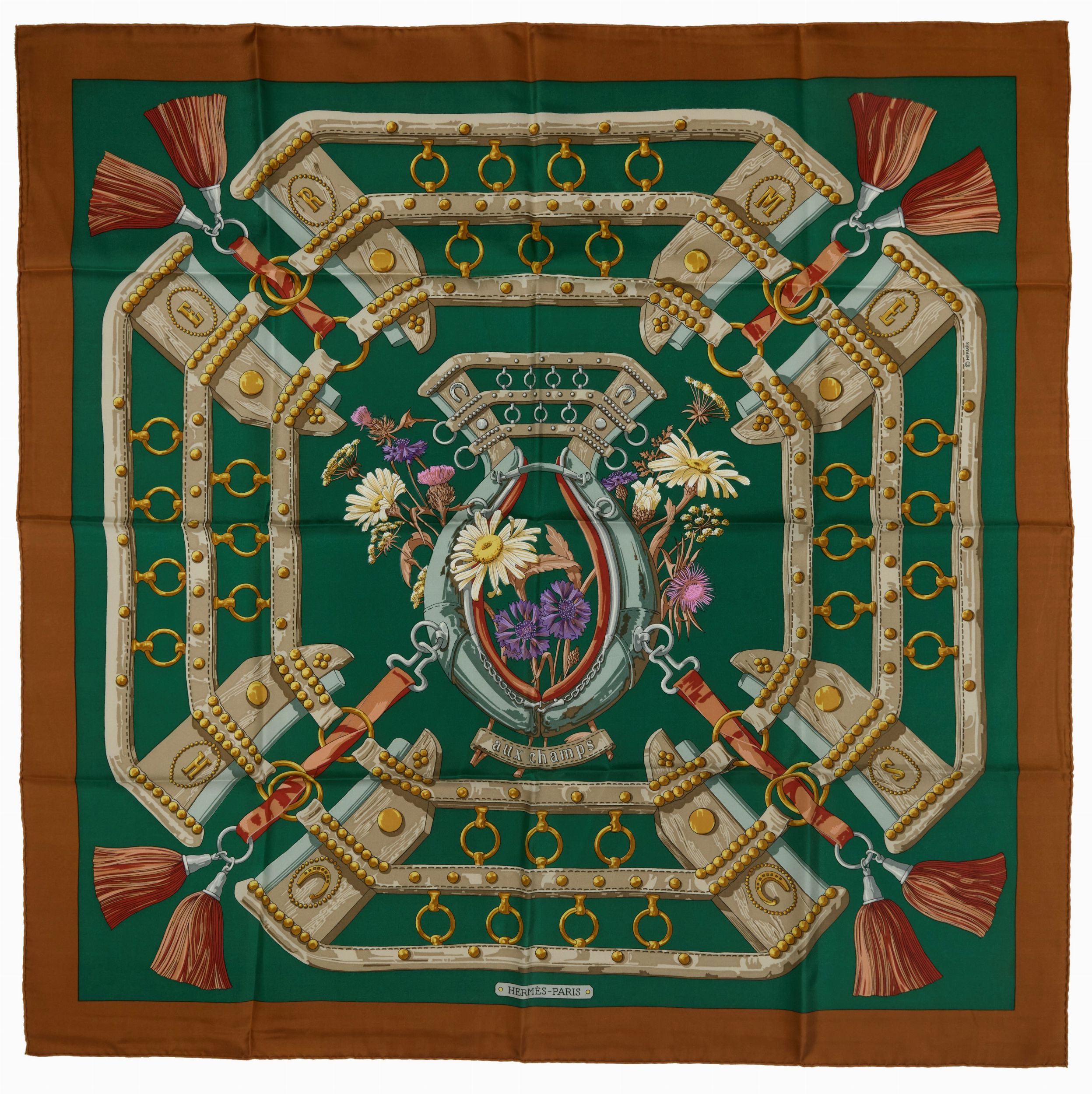 1970 in seta su fondo verde con bordo color marrone chiaro, Caty Latham (lievissimi difetti)