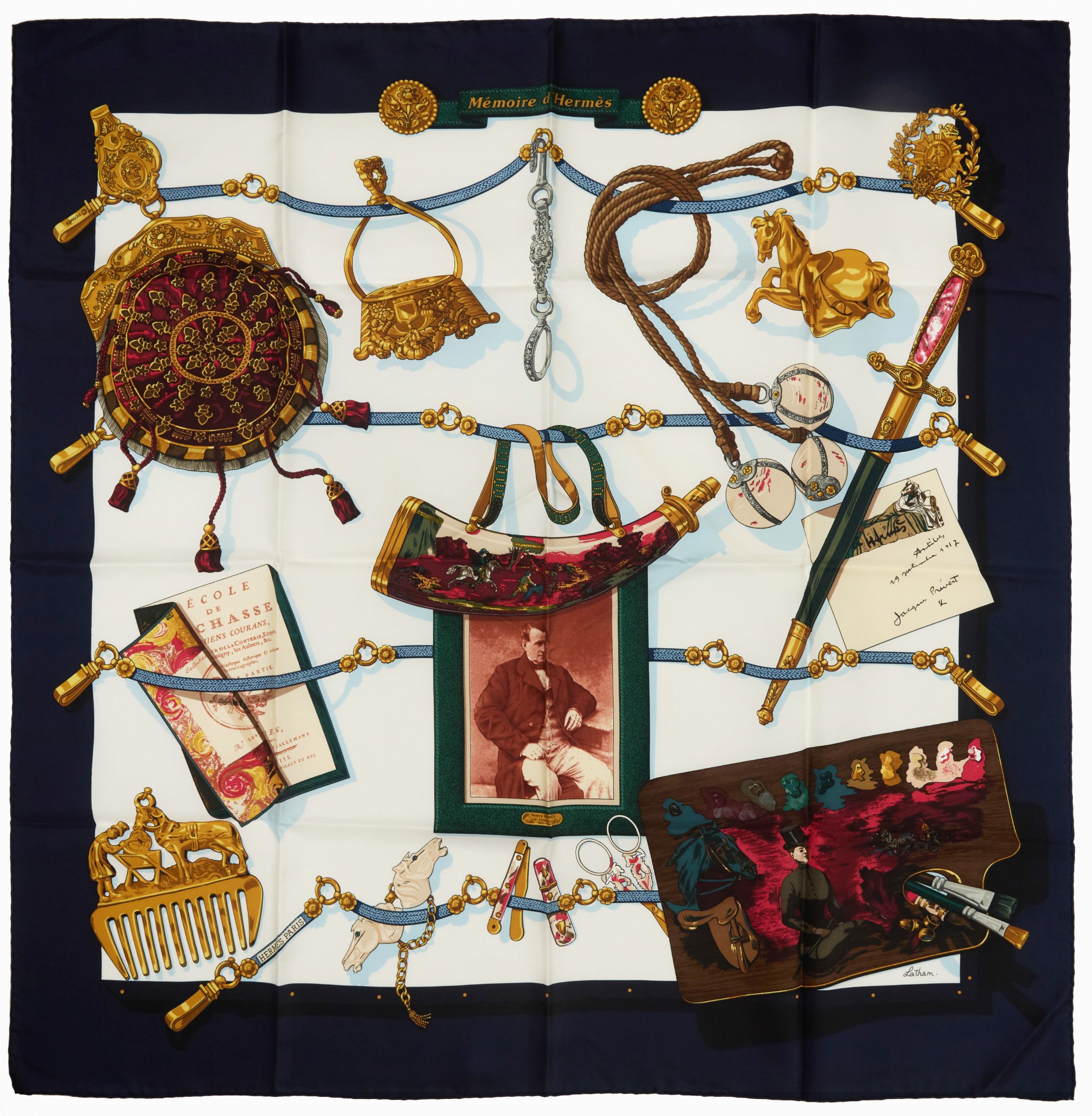 1997 in seta su fondo color bianco con bordo color blu, Caty Latham-Audibert